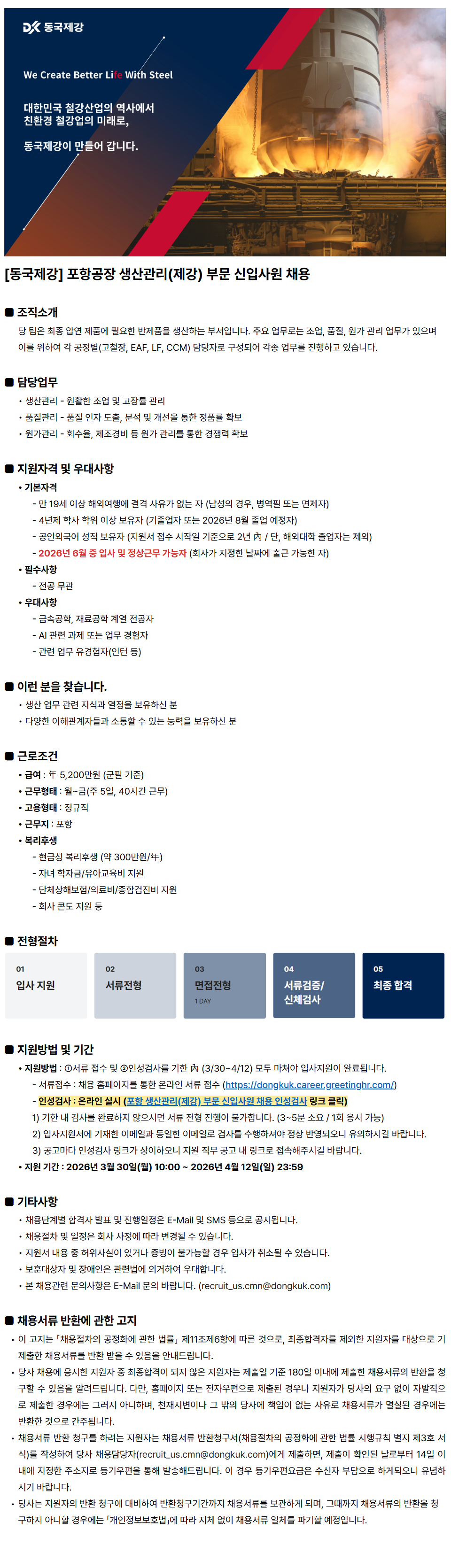 [µ¿±¹Á¦°] Æ÷Ç×°øÀå »ý»ê°ü¸®(Á¦°) ºÎ¹® ½ÅÀÔ»ç¿ø ä¿ë