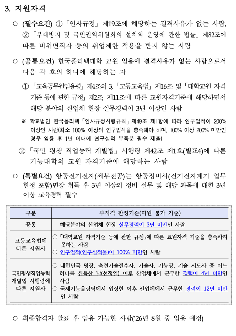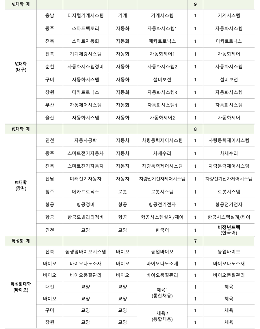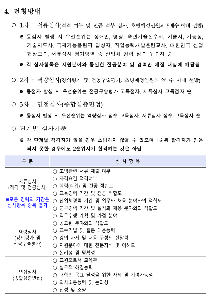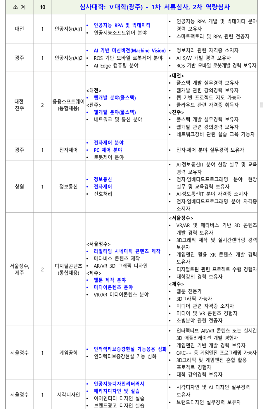 1. ÃʺùºÐ¾ß ¹× Àοø : 18°³ °è¿ 82¸í(Á¤³âÆ®·¢: 78¸í, ºñÁ¤³âÆ®·¢: 4¸í) [ ´ëÇк° ½É»çÇöȲ(Á¤³âÆ®·¢) ] *ÆÄ¶õ»ö º¼µå·Î Ç¥½ÃµÈ ´ã´ç¿¹Á¤ºÐ¾ß´Â ¿ª·®½É»ç °ÀÇÆò°¡ ÁÖÁ¦ Ä·ÆÛ½º Àοø ¼¼ºÎÀü°ø ´ã´ç¿¹Á¤ºÐ¾ß ¿ì´ë»çÇ× ÃÑ °è 78 ¼Ò °è 13 ½É»ç´ëÇÐ: I ´ëÇÐ(¼¿ïÁ¤¼ö) - 1Â÷ ¼·ù½É»ç, 2Â÷ ¿ª·®½É»ç <³²ÀÎõ> <³²ÀÎõ> ÃʺùºÐ¾ß ÇÐÀ§ ÃëµæÀÚ Àü·Âº¯È¯ Àü±âºÐ¾ß ÀÚ°ÝÁõ ¼ÒÁöÀÚ ³²ÀÎõ, Àü±â½Ã½ºÅÛ1 Àü±â¼³ºñ ºÐ¾ß 2 Àü±âºÐ¾ß ½Ç¹«°æ·Â º¸À¯ÀÚ ÃæÁÖ (ÅëÇÕä¿ë) Àü±â°øÇÐ ºÐ¾ß <ÃæÁÖ> <ÃæÁÖ> Àü±â¼³ºñ ½Ç¹«°æ·Â º¸À¯ÀÚ Àü±â¼³ºñ ¡¤ Àü±âºÐ¾ß ÀÚ°ÝÁõ ÃëµæÀÚ ¡¤ PLCÁ¦¾î ºÐ¾ß ȼº 1 Àü±â½Ã½ºÅÛ2 ¡¤ Àü±â½Ã½ºÅÛ PLC ºÐ¾ß °Àǰæ·Â º¸À¯ÀÚ ¡¤ Àü±âÁ¦¾î PLCÁ¦¾î ºÐ¾ß Àü±âºÐ¾ß ÀÚ°ÝÁõ ¼ÒÁöÀÚ °¸ª 1 Àü±â½Ã½ºÅÛ3 ¡¤ ÀÚµ¿Á¦¾î ºÐ¾ß ¡¤ ÀÚµ¿Á¦¾îºÐ¾ß ±³À°°æ·Â º¸À¯ÀÚ Àü±â°øÇÐ ºÐ¾ß <Ãæ³²> <Ãæ³²> ¸¶ÀÌÅ©·ÎÇÁ·Î¼¼¼ ºÐ¾ß Àü·ÂÀüÀÚ °ü·Ã ÇöÀå°æ·Â º¸À¯ÀÚ Àü·ÂÀüÀÚ ºÐ¾ß Àü±âºÐ¾ß ÀÚ°ÝÁõ ¼ÒÁöÀÚ Ãæ³², Àü·Âº¯È¯ <±¤ÁÖ> 2 NCS±â¹Ý ÇÐ»ç ¿î¿µ °æÇè º¸À¯ÀÚ ±¤ÁÖ (ÅëÇÕä¿ë) Àü·Âº¯È¯ ºÐ¾ß <±¤ÁÖ> Àü±â°øÇÐ ºÐ¾ß Àü·Âº¯È¯ ¹× ¸¶ÀÌÅ©·ÎÇÁ·Î¼¼¼ ±â¹Ý ¡¤ ¸¶ÀÌÅ©·ÎÇÁ·Î¼¼¼ ½Ç¹«°æ·Â º¸À¯ÀÚ ¡¤ µðÁöÅÐÁ¦¾î ºÐ¾ß <±¤ÁÖ> <±¤ÁÖ> ¼³ºñ ºÐ¾ß Àü±â¼³ºñ ºÐ¾ß ½Ç¹« °æ·ÂÀÚ ¼öº¯Àü¼³ºñ ºÐ¾ß Àü±â°øÇÐ Àü°øÀÚ Àü±â°øÇÐ ºÐ¾ß <ÀüºÏ> <ÀüºÏ> Àü±â¼³ºñ ºÐ¾ß ½Ç¹«°æ·Â º¸À¯ÀÚ ¼öº¯Àü¼³ºñ ºÐ¾ß Àü±âºÐ¾ß ÀÚ°ÝÁõ ¼ÒÁöÀÚ ±¤ÁÖ, ÀüºÏ, Àü±â½Ã½ºÅÛ4 3 Àü±â¼³ºñ ºÐ¾ß Àü±â¼³ºñ ½Ç±â ¹× Àü±â ¾ÈÀüÁø´Ü ½Ç¹« ºÎ»ê (ÅëÇÕä¿ë) Àü±â¾ÈÀüÁ¡°Ë ºÐ¾ß °¡´ÉÀÚ Àü±â¼³ºñ¼³°è ºÐ¾ß <ºÎ»ê> <ºÎ»ê> Àü±â¼³ºñ ¹× Àü±â½Ã½ºÅÛÁ¦¾î ºÐ¾ß ½Ç¹« Àü±âÀÚ±âÇÐ ºÐ¾ß °æ·Â º¸À¯ÀÚ Àü±â¼³ºñ±â¼ú ºÐ¾ß Àü±âºÐ¾ß ÀÚ°ÝÁõ ¼ÒÁöÀÚ ¡¤ Àü±â½Ç¹«½Ç½À ºÐ¾ß ¡¤ Àü±âºÐ¾ß ÇÐÀ§ ÃëµæÀÚ ¡¤ Àü±âºÐ¾ß ÇöÀå °æ·Â º¸À¯ÀÚ Àü±â¼³ºñ ¹× Àü±â°ø»ç ¼³°è ºÐ¾ß Àü³² 1 Àü±â½Ã½ºÅÛ5 Àü±âºÐ¾ß Àü°øÀÚ ¡¤ Àü±â°øÇÐ ºÐ¾ß ¡¤ Àü±âºÐ¾ß ÀÚ°ÝÁõ ¼ÒÁöÀÚ ¡¤ Àü±âºÐ¾ß Àü°øÀÚ Àü±â°ø»ç ¼³°è ºÐ¾ß Àü±â¼³ºñ ¼³°è, °ø»ç °èȹ ¹× °ßÀû µî ¼øÃµ 1 Àü±â½Ã½ºÅÛ6 PLCÁ¦¾î ºÐ¾ß Àü±â°ø»ç ºÐ¾ß ½Ç¹«°æ·Â º¸À¯ÀÚ ¡¤ Àü±â°ø»ç ºÐ¾ß ¡¤ Àü±âºÐ¾ß ÀÚ°ÝÁõ ¼ÒÁöÀÚ ¼Ò¹æ(Àü±â) °ü·Ã ÀÚ°ÝÁõ ¼ÒÁöÀÚ Àü·Â±â¼ú ¼Ò¹æ(Àü±â) ºÐ¾ß 1 Àü±â½Ã½ºÅÛ7 Àü±â °ü·Ã ÀÚ°ÝÁõ ¼ÒÁöÀÚ ±³À°¿ø ¡¤ Àü±â½Ã½ºÅÛÁ¦¾î ºÐ¾ß ¼Ò¹æ(Àü±â)ºÐ¾ß ½Ç¹«°æ·Â º¸À¯ÀÚ ¡¤ PLC/PC ±â¹Ý Á¦¾î ºÐ¾ß °æ·ÂÀÚ Àü·Â±â¼ú ½ÅÀç»ý¿¡³ÊÁö(ž籤) ºÐ¾ß EMS/SCADA ½Ã½ºÅÛ¼³°è/°³¹ß °æ·Â º¸À¯ÀÚ 1 ½ÅÀç»ý¿¡³ÊÁö ±³À°¿ø Àü·ÂIT ºÐ¾ß Àü±â °ü·Ã ÀÚ°ÝÁõ ¼ÒÁöÀÚ ÃʺùºÐ¾ß ÇöÀå °æ·Â ¹× ±³À°°æ·Â º¸À¯ÀÚ ¼Ò °è 11 ½É»ç´ëÇÐ: II ´ëÇÐ(ÀÎõ) - 1Â÷ ¼·ù½É»ç, 2Â÷ ¿ª·®½É»ç ¹ÝµµÃ¼ÆÐŰ¡ °øÁ¤ ºÐ¾ß ¹ÝµµÃ¼ÆÐŰ¡ ºÐ¾ß ÇÐÀ§ ÃëµæÀÚ ¹ÝµµÃ¼ÆÐŰ¡ ÀåºñÀ¯Áöº¸¼ö ºÐ¾ß ¹ÝµµÃ¼ÆÐŰ¡ ºÐ¾ß ½Ç¹«°æ·Â º¸À¯ÀÚ ¼º³² 1 ¹ÝµµÃ¼ÆÐŰ¡1 TSV, Hybrid bonding ¾î¼Àºí¸® °øÁ¤ TSV, Hybrid bonding, HBM Å×½ºÆ® ¹× HBM Å×½ºÆ® ºÐ¾ß ºÐ¾ß °æ·ÂÀÚ ¹ÝµµÃ¼ÆÐŰ¡ PI (Process Integration) ¹ÝµµÃ¼ÆÐŰ¡(ÈİøÁ¤) °æ·Â º¸À¯ÀÚ Ã»ÁÖ 1 ¹ÝµµÃ¼ÆÐŰ¡2 ¡Ü ¹ÝµµÃ¼ÆÐŰ¡ Àåºñ¼³°è ¹ÝµµÃ¼ OSAT ±â¾÷ °øÁ¤Àåºñ ½Ç¹«°æÇèÀÚ ¹ÝµµÃ¼ Å×½ºÆ® ¹ÝµµÃ¼ Á¦Á¶°øÁ¤ °ü·Ã »ê¾÷ü ¹× ¿¬±¸¼Ò °æ·Â º¸À¯ÀÚ ¹ÝµµÃ¼ÆÐŰ¡ ¼³°è ºÐ¾ß ¹ÝµµÃ¼ÆÐŰ¡ °øÁ¤ ¸ôµå¼³°è °æ·Â º¸À¯ÀÚ ¹ÝµµÃ¼ÆÐŰ¡ ÇØ¼® ºÐ¾ß ºÎ»ê 1 ¹ÝµµÃ¼ÆÐŰ¡3 ¹ÝµµÃ¼ÆÐŰ¡ °øÁ¤¸®µåÇÁ·¹ÀÓ ÇÁ·Î±×·¹½Ãºê ¹ÝµµÃ¼ÆÐŰ¡ ¸ôµåÁ¦ÀÛ ºÐ¾ß ¼³°è °æ·Â º¸À¯ÀÚ ¹ÝµµÃ¼Àåºñ À¯Áöº¸¼ö(À¯°ø¾Ð) <¼º³²> <¼º³²> ¹ÝµµÃ¼Àåºñ ÀüÀå¼³°è ºÐ¾ß ¹ÝµµÃ¼°øÁ¤Á¦¾î ½Ç¹«°æ·Â º¸À¯ÀÚ ¹ÝµµÃ¼Àåºñ Á¦¾î ºÐ¾ß ¹ÝµµÃ¼/µð½ºÇ÷¹ÀÌ Àåºñ ½Ã½ºÅÛ ÀüÀå ¹ÝµµÃ¼Àåºñ Á¦¾î½Ã½ºÅÛ ¼³°è ºÐ¾ß ¼³°è ½Ç¹« °æ·ÂÀÚ ¹ÝµµÃ¼Àåºñ À¯Áöº¸¼ö ºÐ¾ß ¹ÝµµÃ¼Àåºñ ÀÚµ¿ÈºÐ¾ß ½Ç¹«°æ·Â º¸À¯ÀÚ <´ëÀü> ÀåºñÁ¦¾î(PLC±â¹Ý) ½Ç¹«°æ·Â º¸À¯ÀÚ ¼º³², ´ëÀü, ¹ÝµµÃ¼°øÁ¤Àåºñ 3 ¹ÝµµÃ¼Àåºñ ÀüÀå ºÐ¾ß Àåºñ¸ð¼ÇÁ¦¾î °æ·Â º¸À¯ÀÚ ±¤ÁÖ (ÅëÇÕä¿ë) ÀÚµ¿È ÀüÀå ¹× Á¦¾îºÐ¾ß <´ëÀü> ¹ÝµµÃ¼Àåºñ À¯Áöº¸¼ö ÀÚµ¿È ÀüÀå ¹× Á¦¾î °æ·Â º¸À¯ÀÚ <±¤ÁÖ> ¹ÝµµÃ¼Àåºñ ÀüÀå ºÐ¾ß ½Ç¹« °æ·ÂÀÚ ¹ÝµµÃ¼Àåºñ Á¦¾î ºÐ¾ß ¹ÝµµÃ¼ °ü·