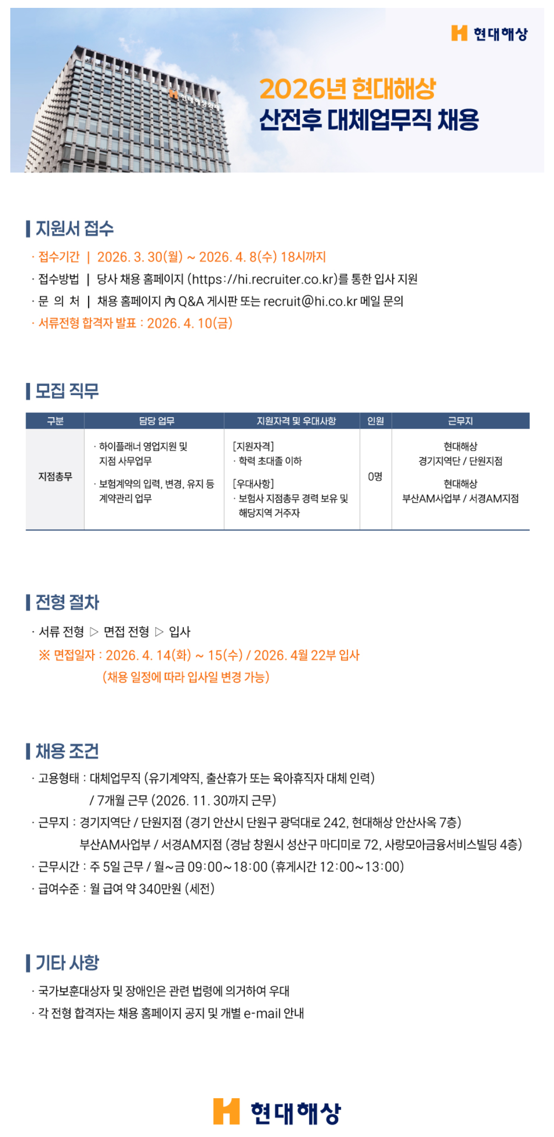 2026 Çö´ëÇØ»ó ´ëü¾÷¹«Á÷ ä¿ë - ¾È»ê/â¿ø