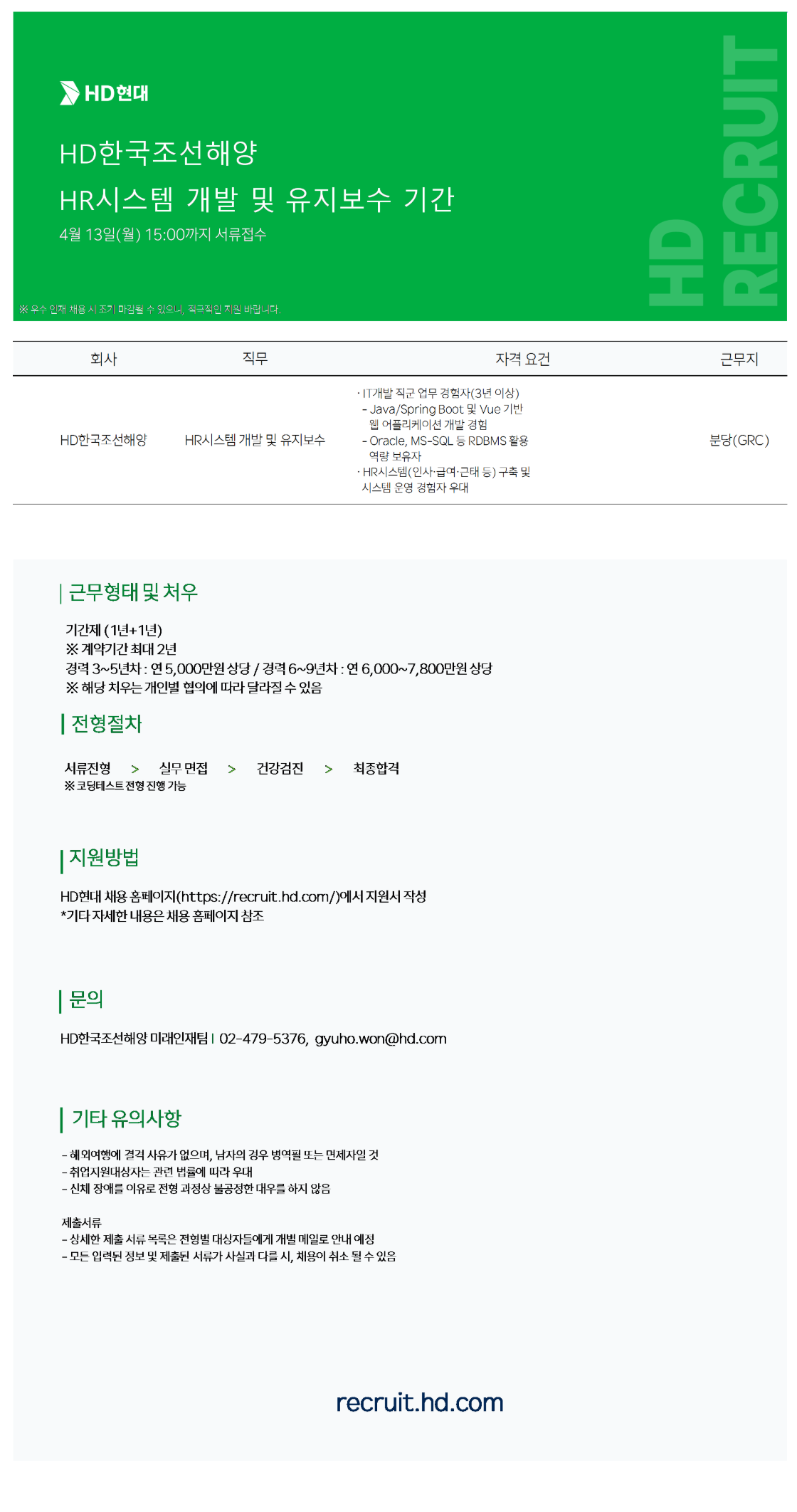 [HDÇѱ¹Á¶¼±Çؾç] HR ½Ã½ºÅÛ °³¹ß ¹× À¯Áöº¸¼ö ±â°£Á¦ ¸ðÁý