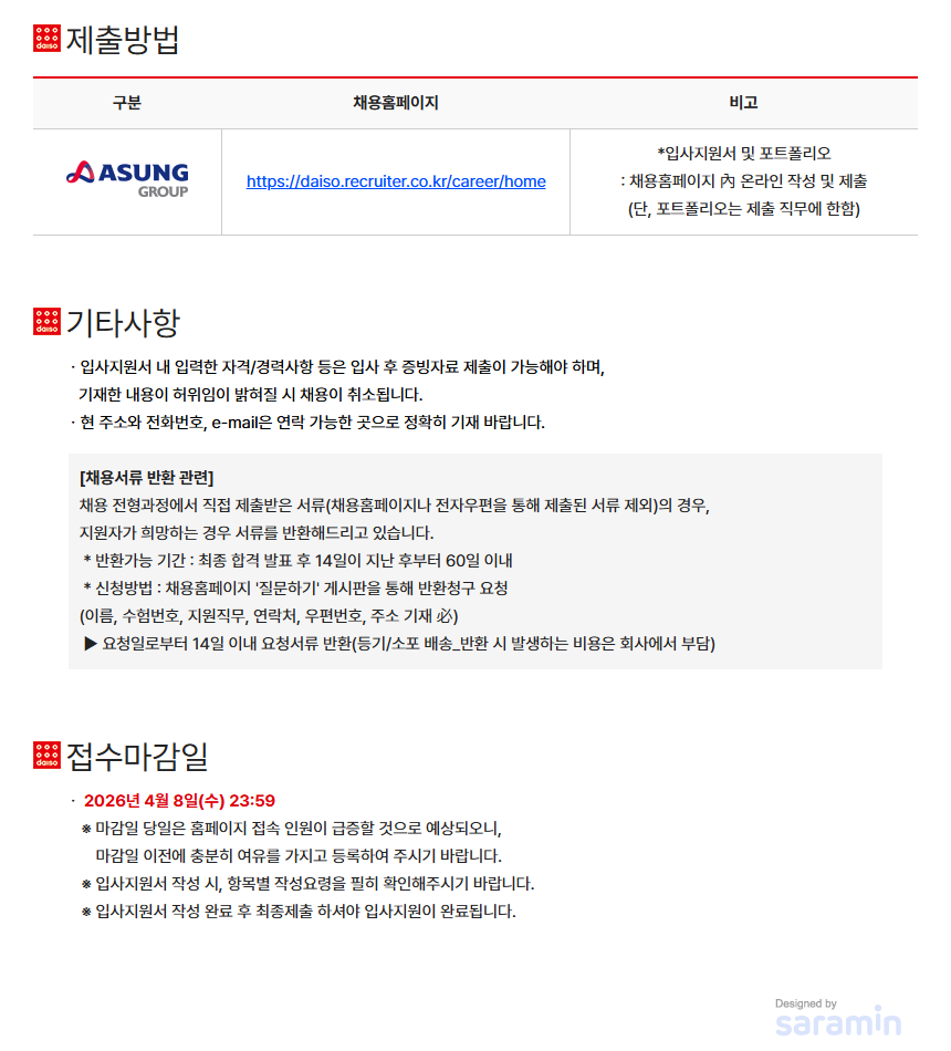 03.27 (±Ý) 04. 08 (¼ö) https://daisa.recruitor.co.kricareerhome