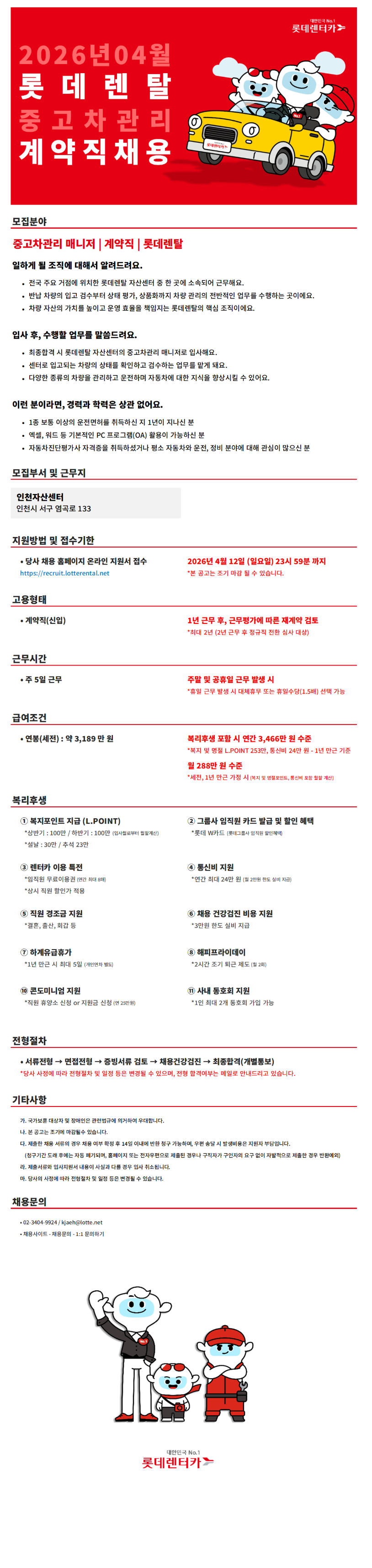 26³â 04¿ù °è¾àÁ÷(½ÅÀÔ) - Áß°íÂ÷°ü¸®(ÀÎõ)