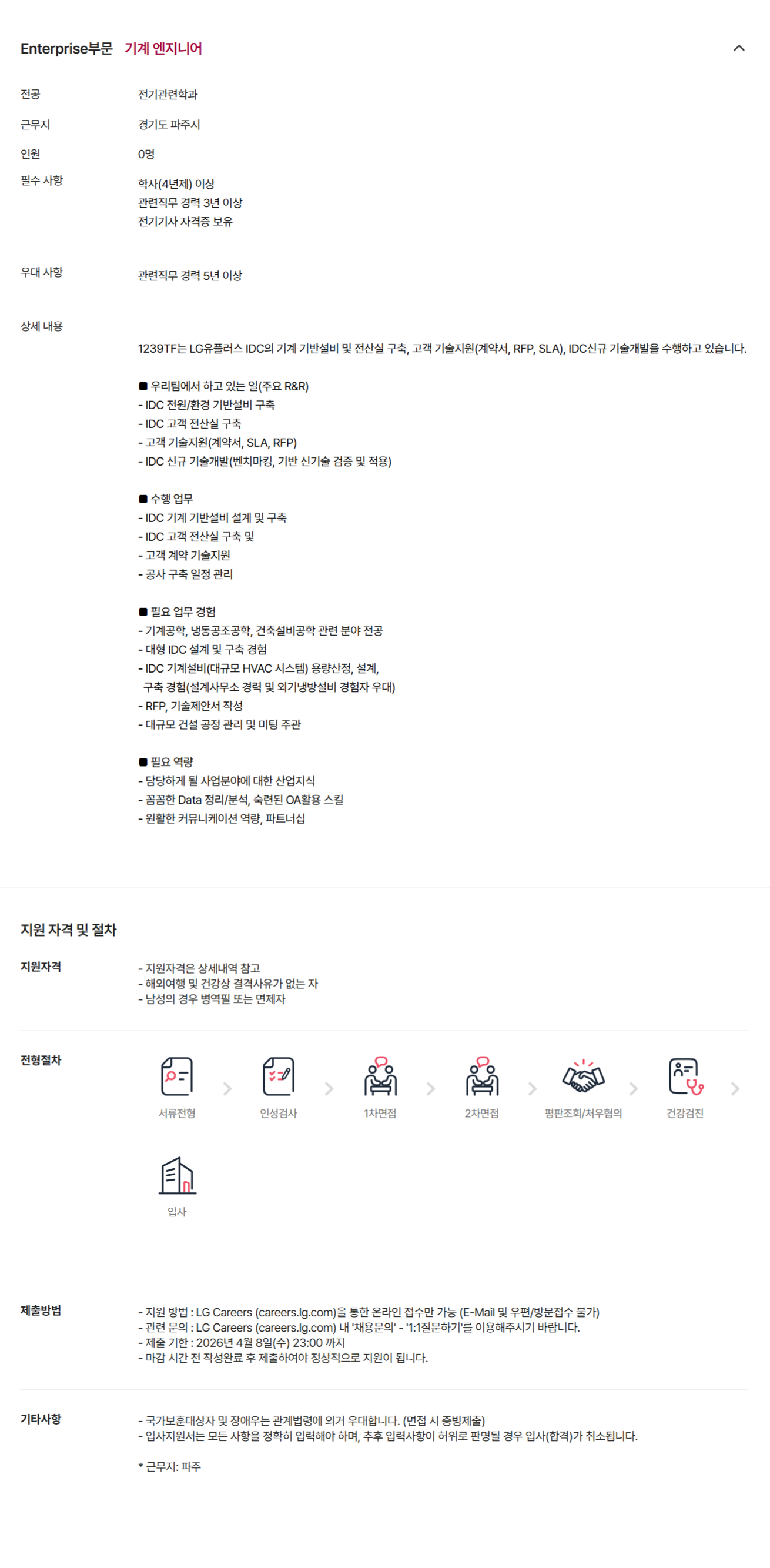 1239TF´Â LGÀ¯Ç÷¯½º IDCÀÇ ±â°è ±â¹Ý¼³ºñ ¹× Àü»ê½Ç ±¸Ãà, °í°´ ±â¼úÁö¿ø(°è¾à¼, RFP, SLA), IDC½Å±Ô ±â¼ú°³¹ßÀ» ¼öÇàÇϰí ÀÖ½À´Ï´Ù.