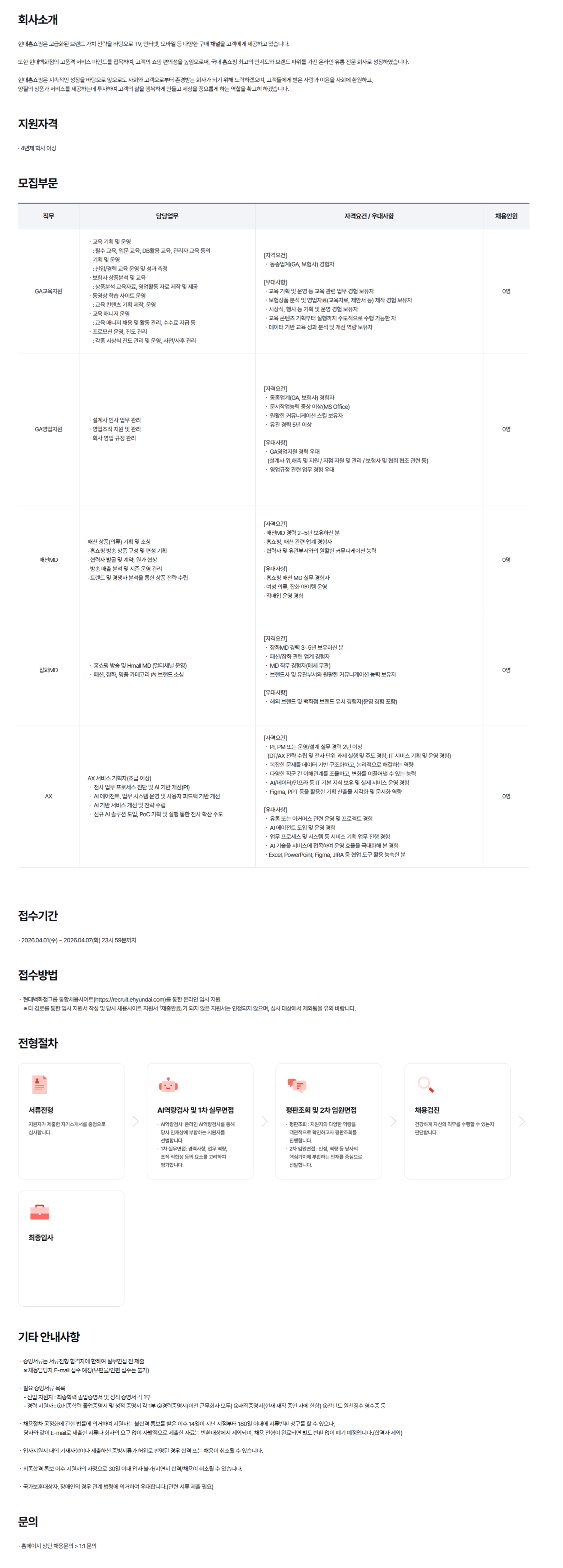Çö´ëȨ¼îÇÎ 4¿ù °æ·ÂÁ÷ °ø°í(GA±³À°Áö¿ø, GA¿µ¾÷Áö¿ø, ÆÐ¼ÇMD, ÀâÈMD, AX)