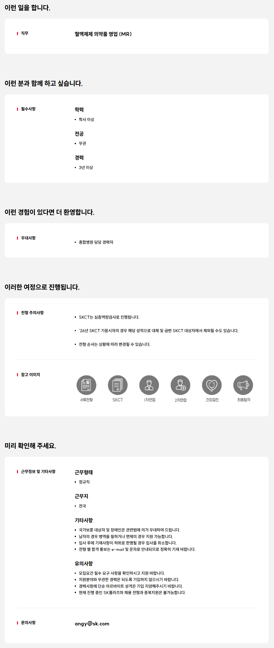 ÀÌ·± ÀÏÀ» ÇÕ´Ï´Ù. Á÷¹« Ç÷¾×Á¦Á¦ ÀǾàǰ ¿µ¾÷ (MR) ÀÌ·± ºÐ°ú ÇÔ²² ÇÏ°í ½Í½À´Ï´Ù. Çʼö»çÇ× Çз Çлç ÀÌ»ó Àü°ø ¹«°ü °æ·Â 3³â ÀÌ»ó ÀÌ·± °æÇèÀÌ ÀÖ´Ù¸é ´õ ȯ¿µÇÕ´Ï´Ù. ¿ì´ë»çÇ× Á¾ÇÕº´¿ø ´ã´ç °æ·ÂÀÚ