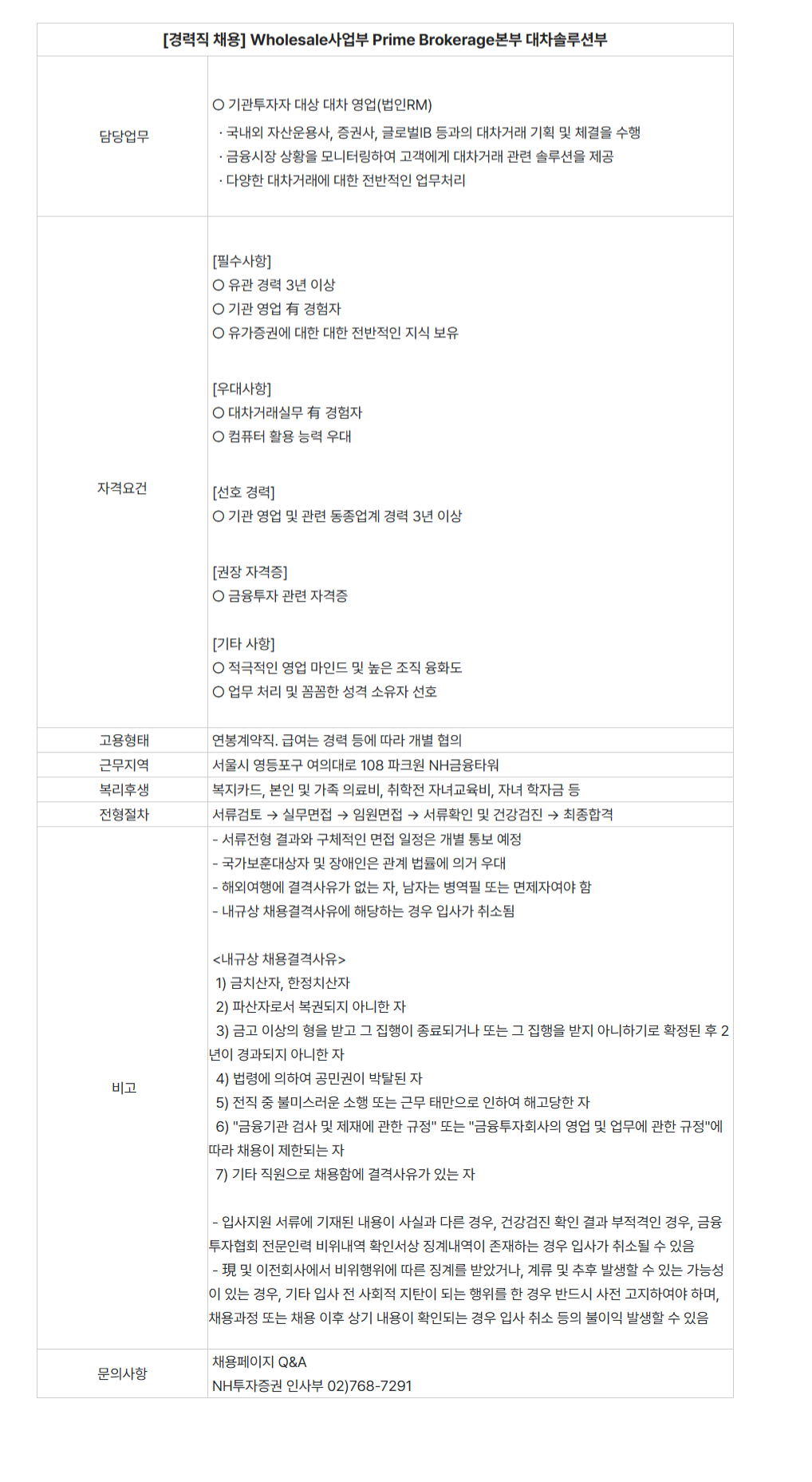 [°æ·ÂÁ÷ ä¿ë] Wholesale»ç¾÷ºÎ Prime Brokerageº»ºÎ ´ëÂ÷¼Ö·ç¼ÇºÎ
