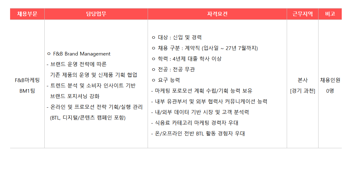 [±¤µ¿Á¦¾à] F&B¸¶ÄÉÆÃºÎ¹® BM1ÆÀ ½ÅÀÔ ¹× °æ·ÂÁ÷¿ø ¸ðÁý(°è¾àÁ÷)