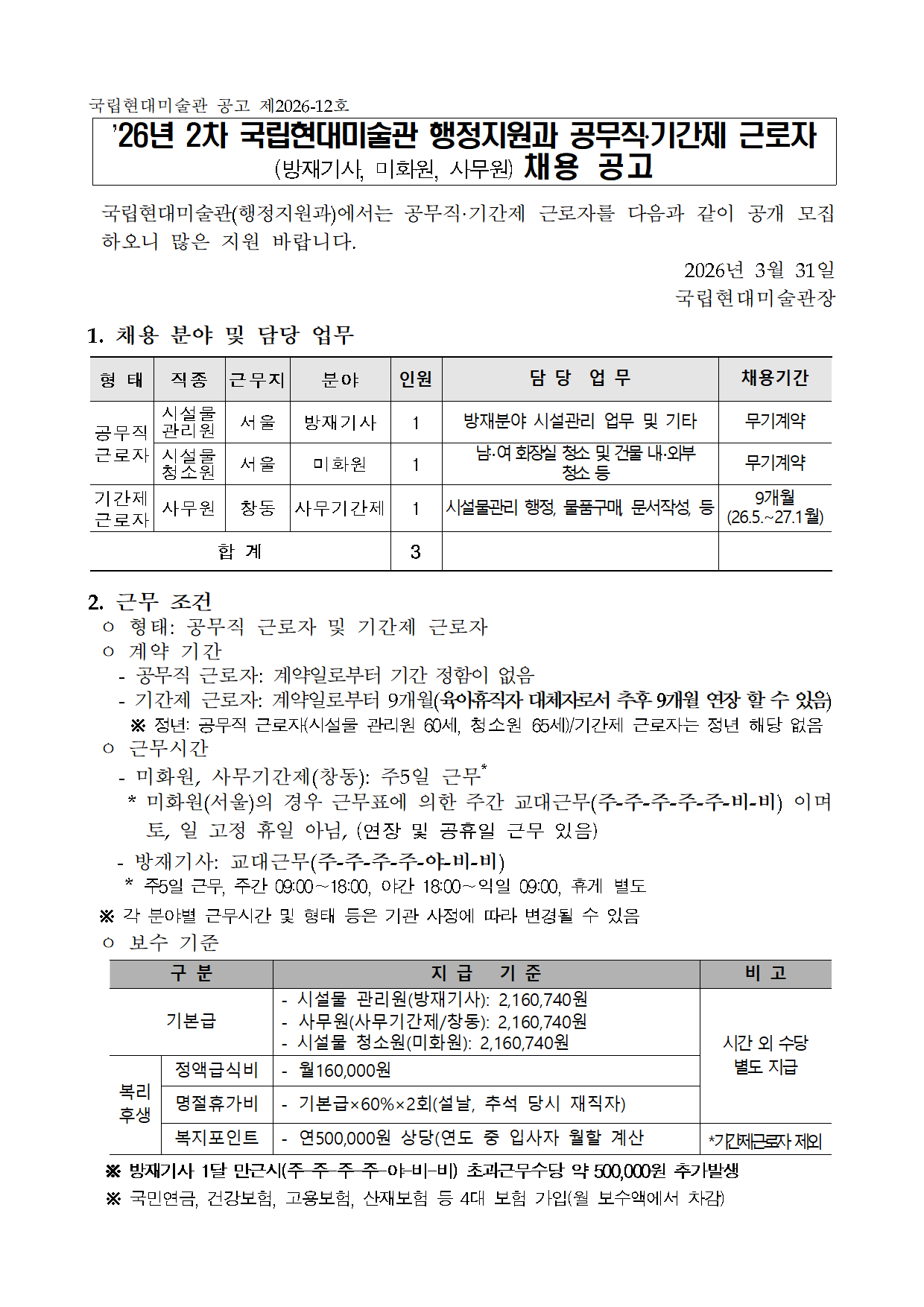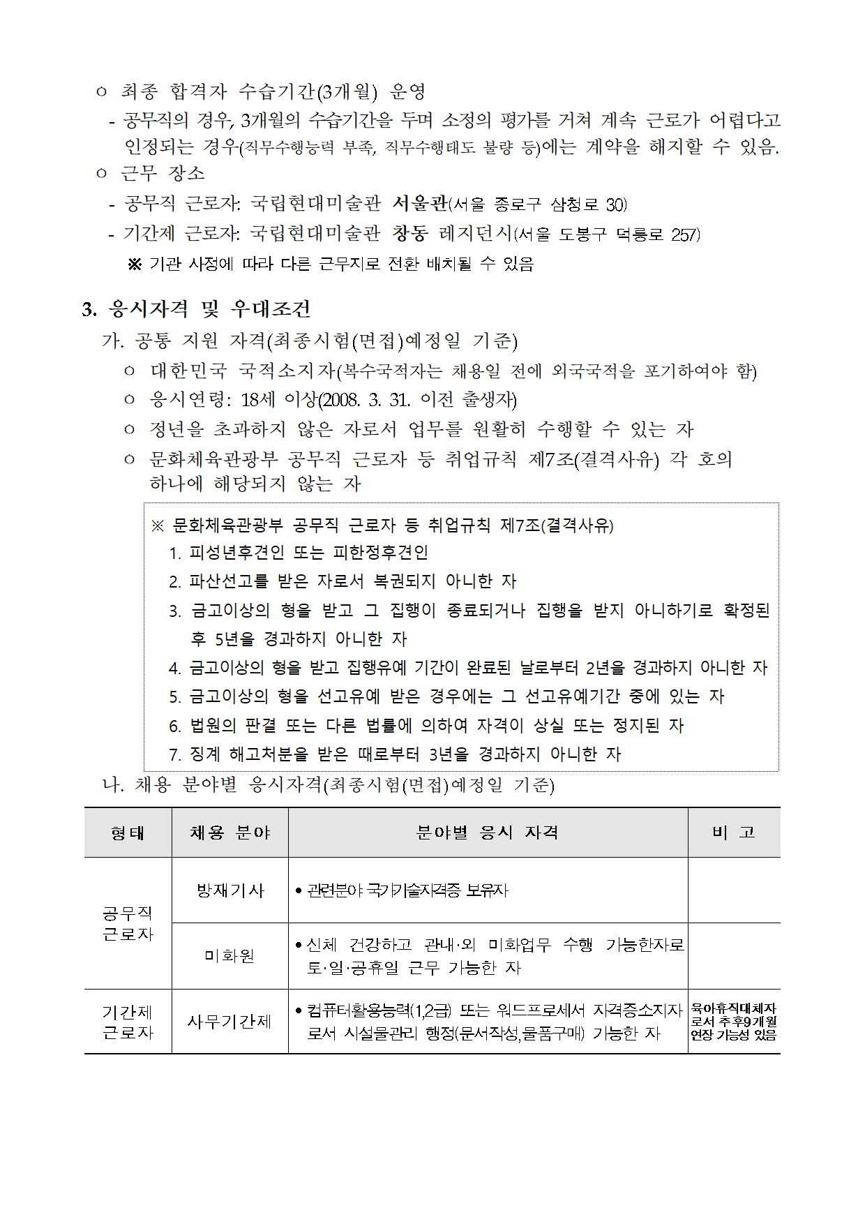 ±¹¸³Çö´ë¹Ì¼ú°ü ÇàÁ¤Áö¿ø°ú °ø¹«Á÷¡¤±â°£Á¦ ±Ù·ÎÀÚ Ã¤¿ë °ø°í