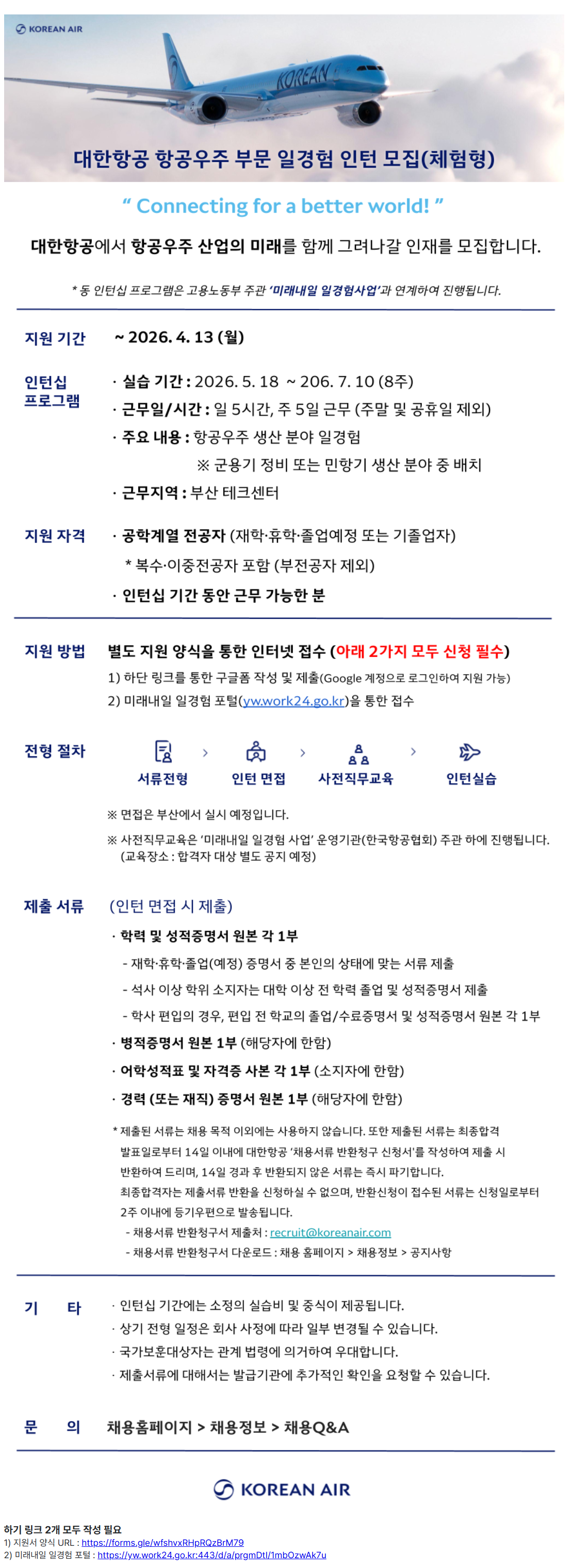 2026³â ´ëÇÑÇ×°ø Ç×°ø¿ìÁÖ ºÎ¹® ÀϰæÇè ÀÎÅÏ ¸ðÁý(üÇèÇü)
