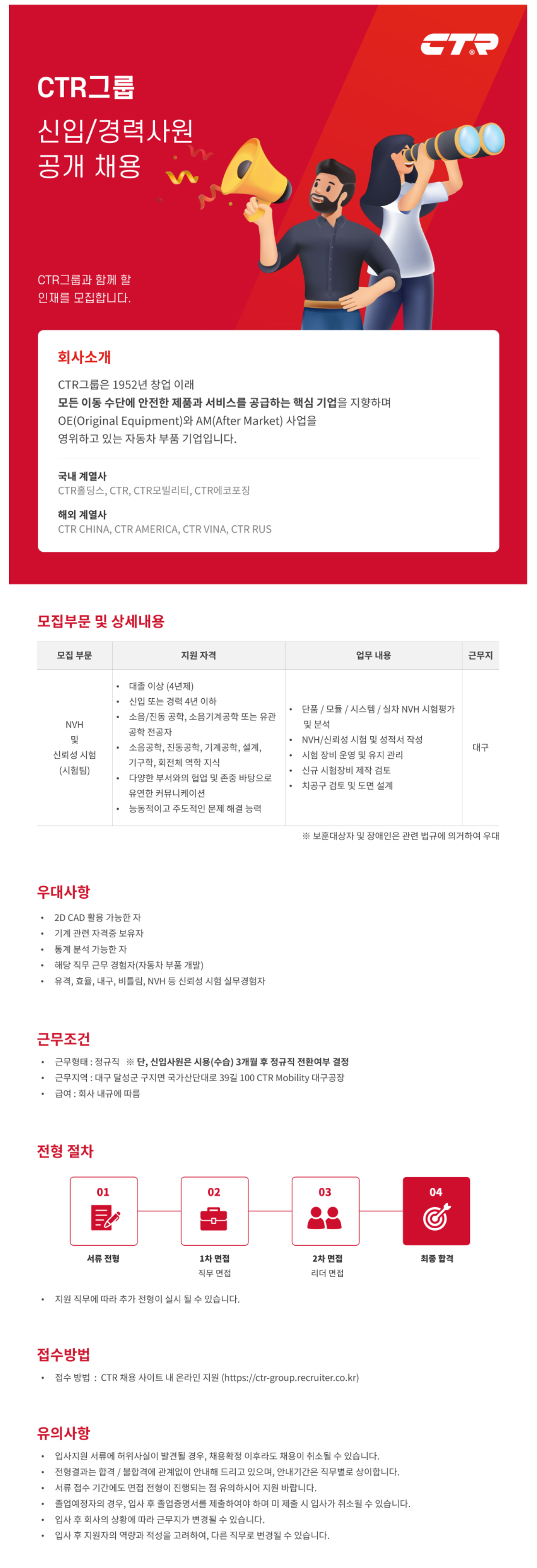CTR Mobility NVH ¹× ½Å·Ú¼º ½ÃÇè(´ë±¸) ½ÅÀÔ/°æ·ÂÁ÷ ä¿ë