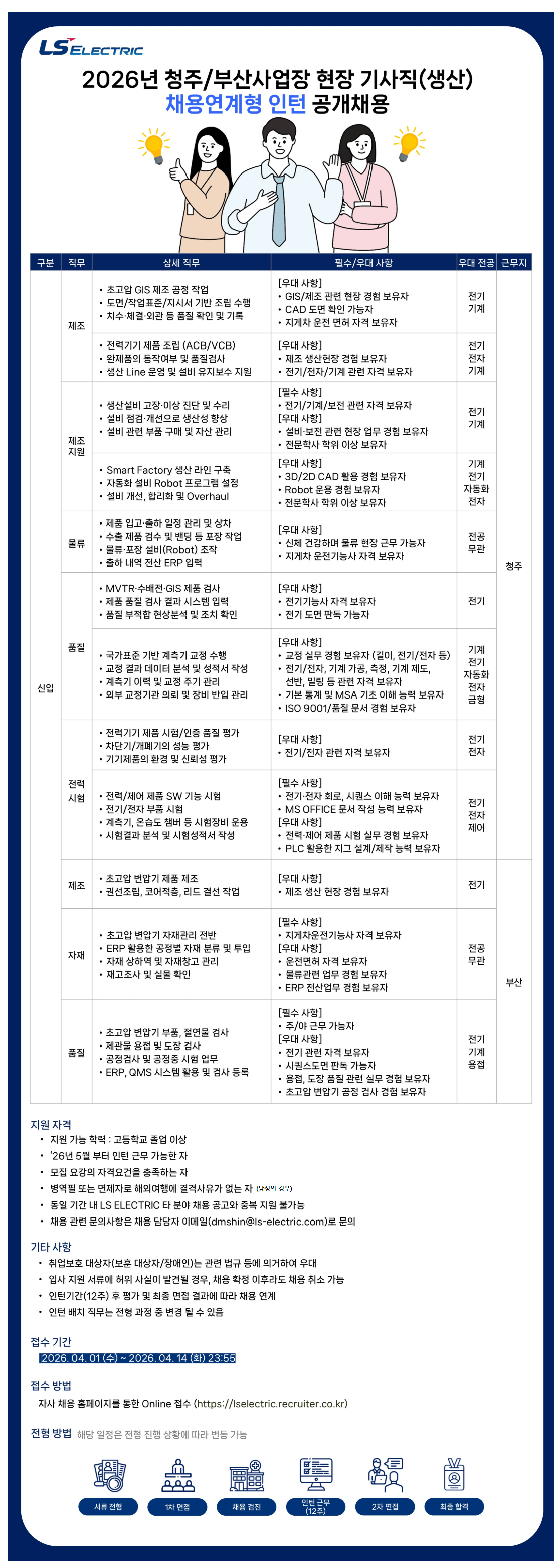 2026³â ûÁÖ/ºÎ»ê»ç¾÷Àå ÇöÀå ±â»çÁ÷(»ý»ê) ä¿ë¿¬°èÇü ÀÎÅÏ °ø°³Ã¤¿ë