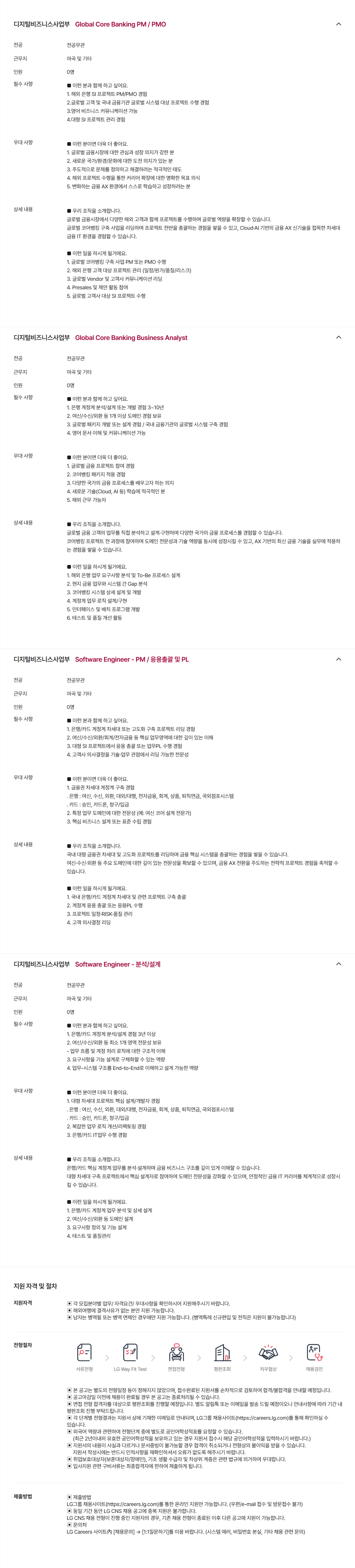 [LG CNS] ±ÝÀ¶(ÀºÇà/Ä«µå) ±Û·Î¹ú/Äھ¿ª Àü¹®°¡ ¸ðÁý(°æ·Â)