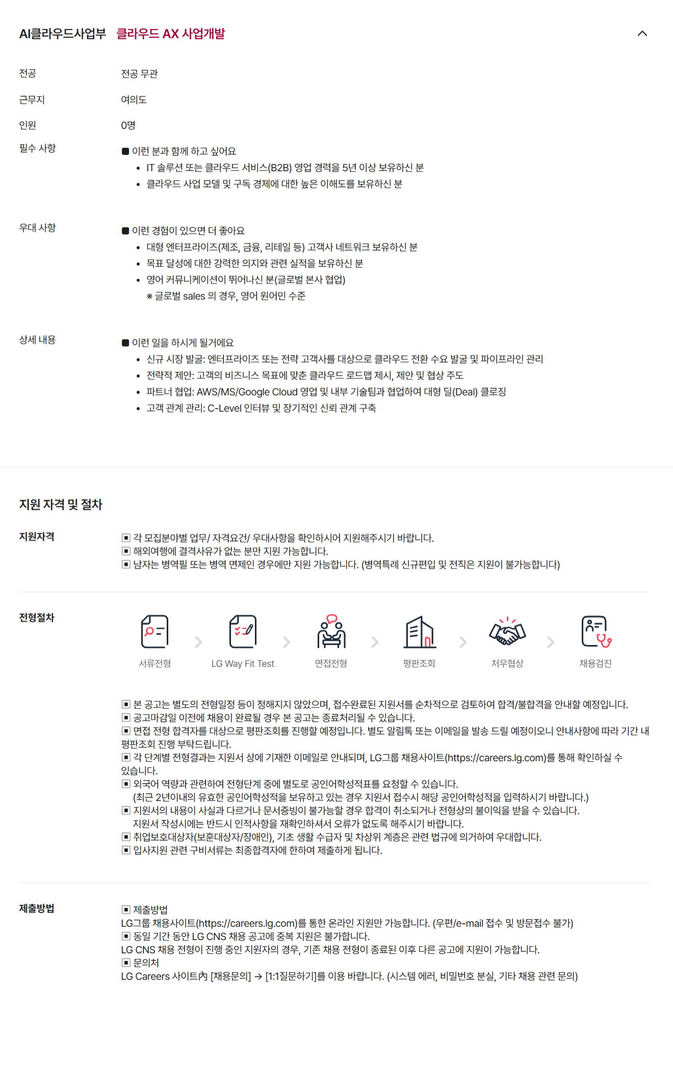 [LG CNS] ±Û·Î¹ú/±¹³» Ŭ¶ó¿ìµå ¹× Ŭ¶ó¿ìµå ±â¹Ý AX Sales ´ã´çÀÚ ¸ðÁý(°æ·Â)