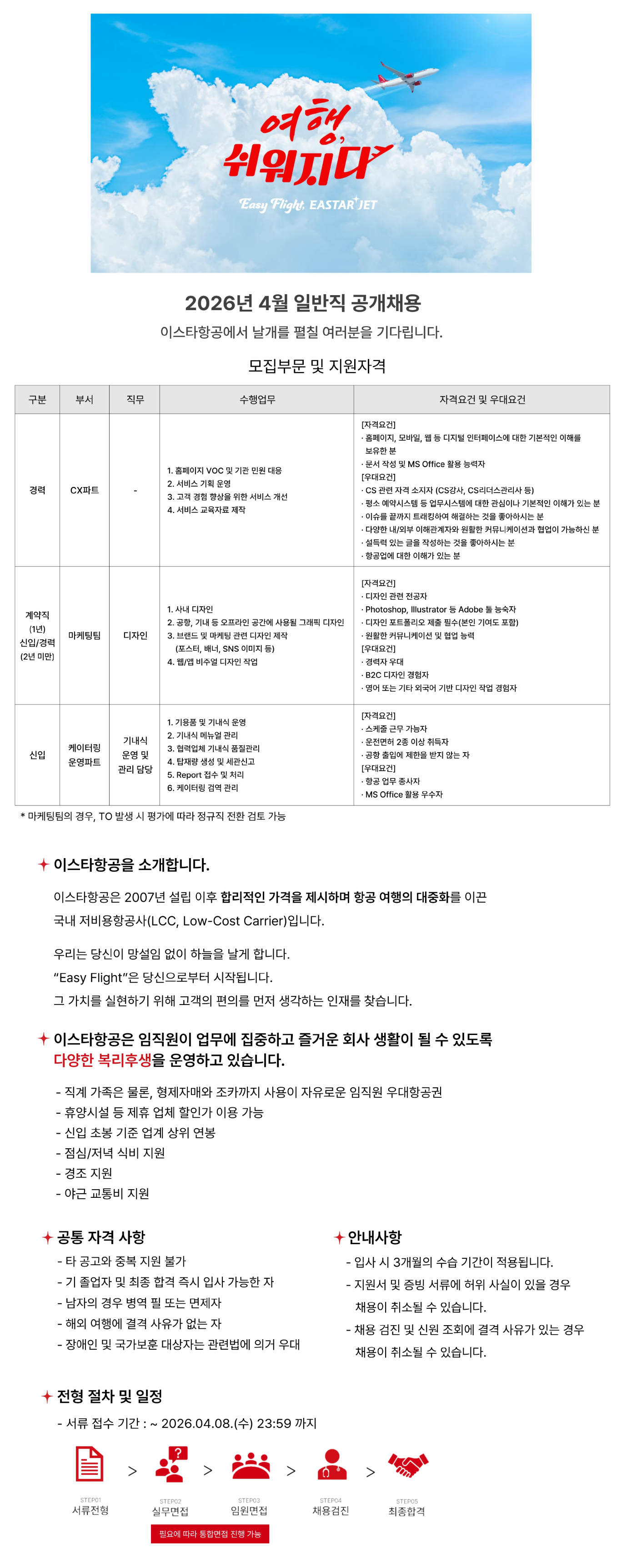 [À̽ºÅ¸Ç×°ø] 2026³â 4¿ù ÀϹÝÁ÷ °ø°³Ã¤¿ë(CXÆÄÆ®, ¸¶ÄÉÆÃÆÀ, ÄÉÀÌÅ͸µ¿î¿µÆÄÆ®)
