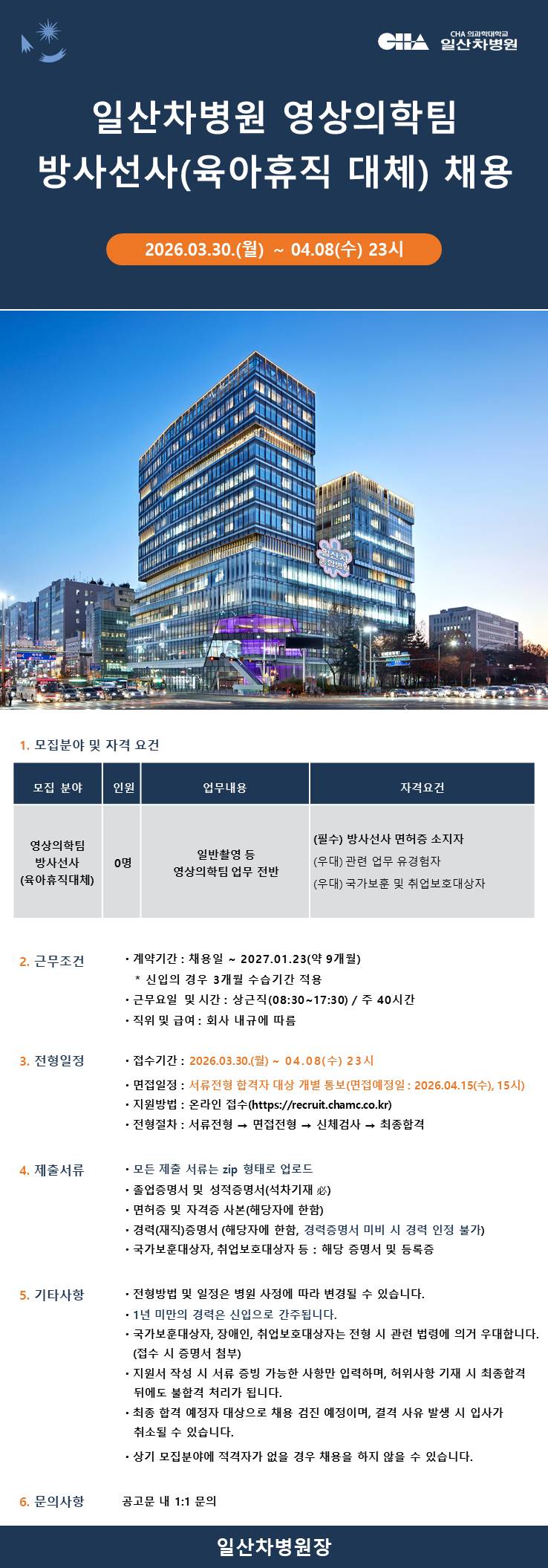 [ÀÏ»êÂ÷º´¿ø] ÀÏ»êÂ÷º´¿ø ¿µ»óÀÇÇÐÆÀ ¹æ»ç¼±»ç(À°¾ÆÈÞÁ÷ ´ëü) ä¿ë