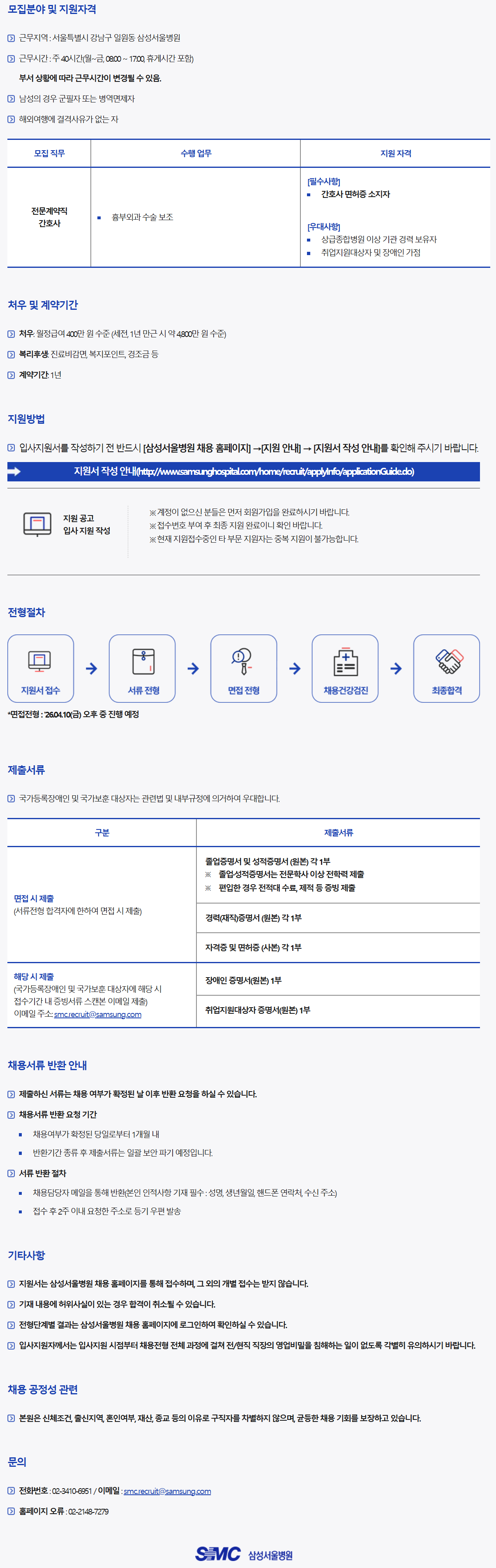 ¸ðÁý Á÷¹« ¼öÇà ¾÷¹« Áö¿ø ÀÚ°Ý Àü¹®°è¾àÁ÷ °£È£»ç ÈäºÎ¿Ü°ú ¼ö¼ú º¸Á¶ [Çʼö»çÇ×] °£È£»ç ¸éÇãÁõ ¼ÒÁöÀÚ [¿ì´ë»çÇ×] »ó±ÞÁ¾ÇÕº´¿ø ÀÌ»ó ±â°ü °æ·Â º¸À¯ÀÚ Ãë¾÷Áö¿ø´ë»óÀÚ ¹× Àå¾ÖÀÎ °¡Á¡