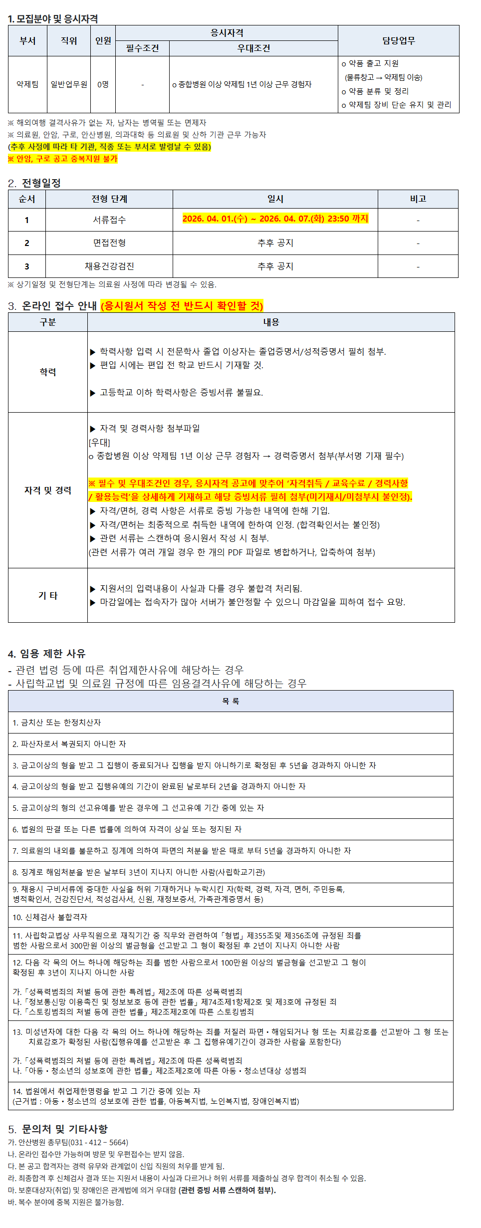 [¾È»êº´¿ø Á¤±ÔÁ÷ 26-4] ¾àÁ¦ÆÀ ÀϹݾ÷¹«¿ø ¸ðÁý