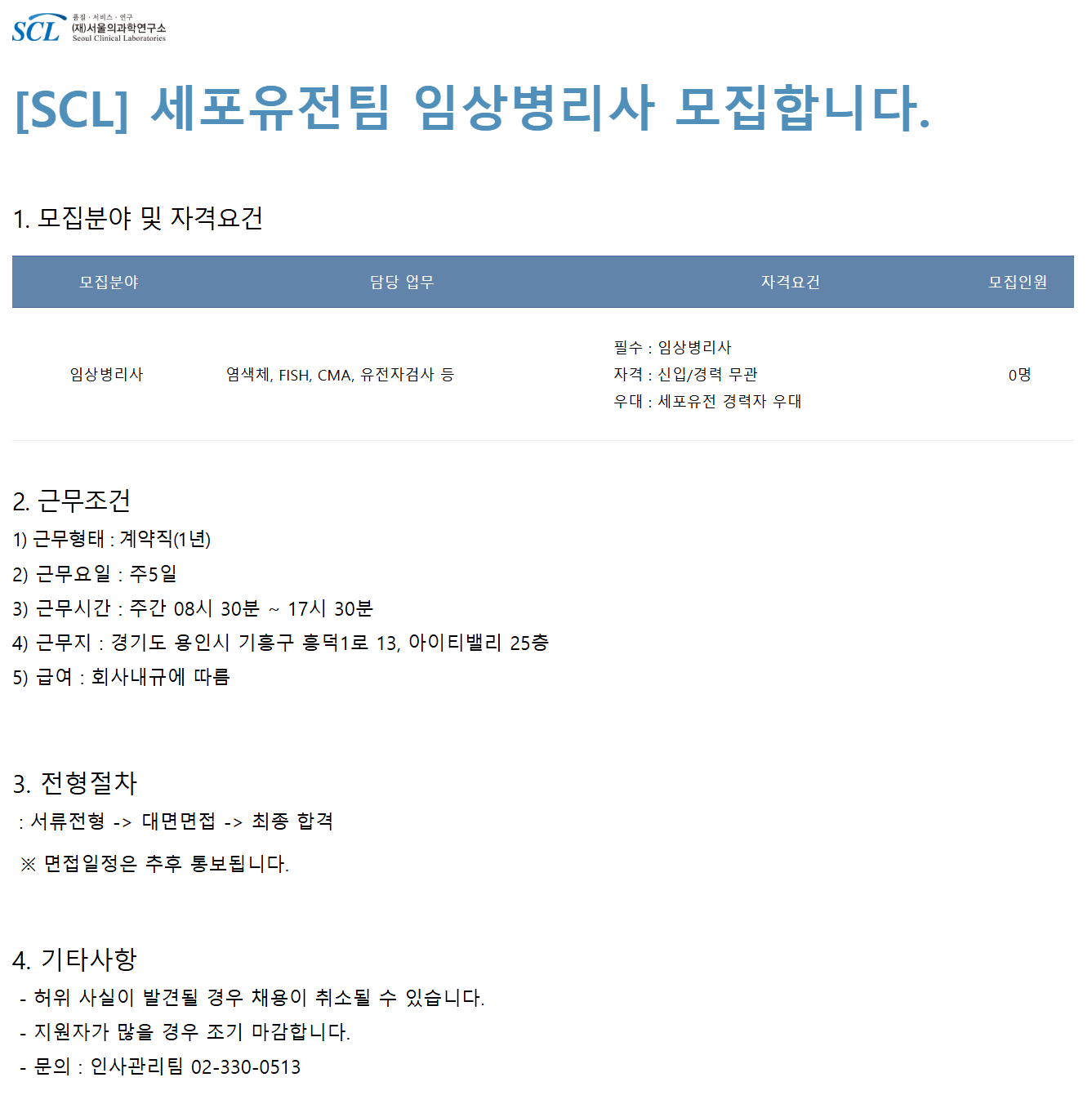 [SCL] ¼¼Æ÷À¯ÀüÆÀ ÀÓ»óº´¸®»ç ¸ðÁýÇÕ´Ï´Ù.