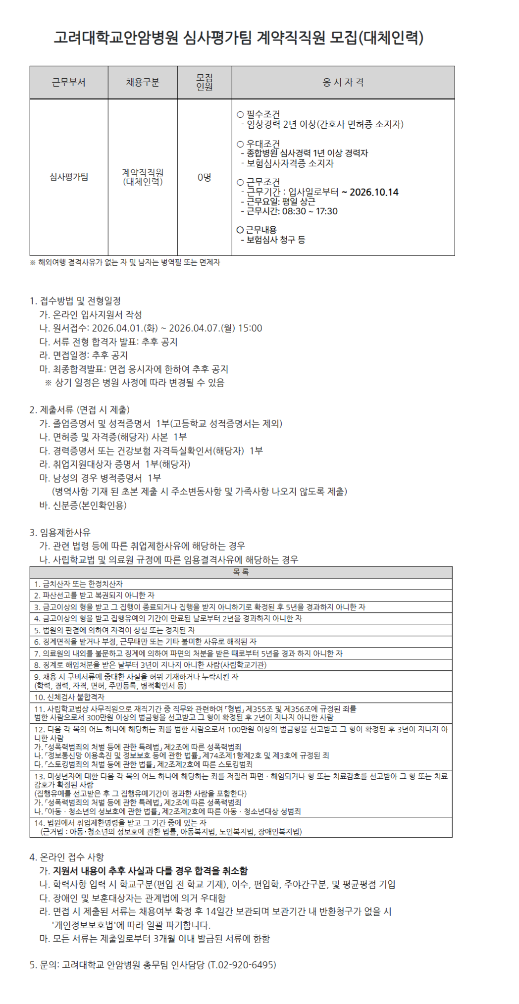 [¾È¾Ïº´¿ø 26-18]½É»çÆò°¡ÆÀ °è¾àÁ÷ Á÷¿ø ¸ðÁý(´ëüÀηÂ)