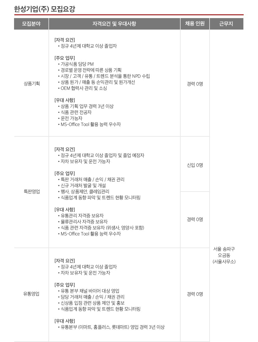 ÇѼº±â¾÷(ÁÖ) ¸ðÁý¿ä°