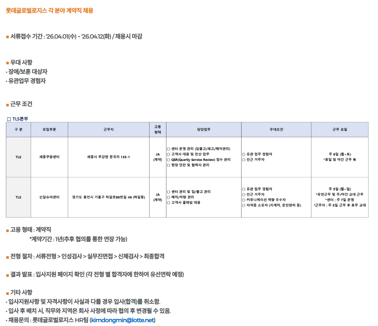 ·Ôµ¥±Û·Î¹ú·ÎÁö½º °¢ ºÐ¾ß °è¾àÁ÷ ä¿ë (~4/12, ±â°£¿¬Àå)