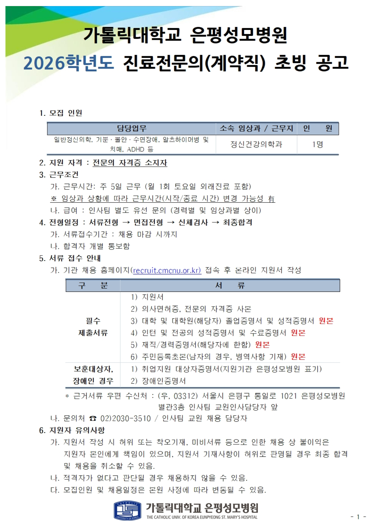 [ÀºÆò¼º¸ð] 2026Çг⵵ Á¤½Å°Ç°ÀÇÇаú Áø·áÀü¹®ÀÇ Ãʺù °ø°í