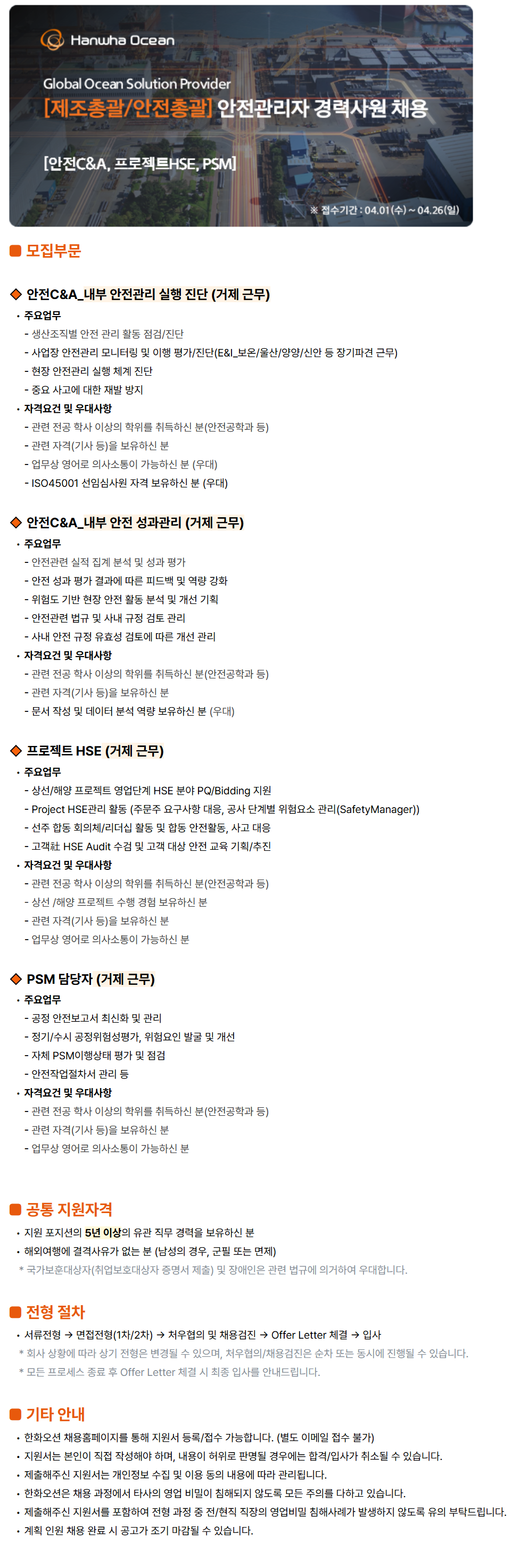 - »ó¼±/ÇØ¾ç ÇÁ·ÎÁ§Æ® ¿µ¾÷´Ü°è HSE ºÐ¾ß PQ/Bidding Áö¿ø