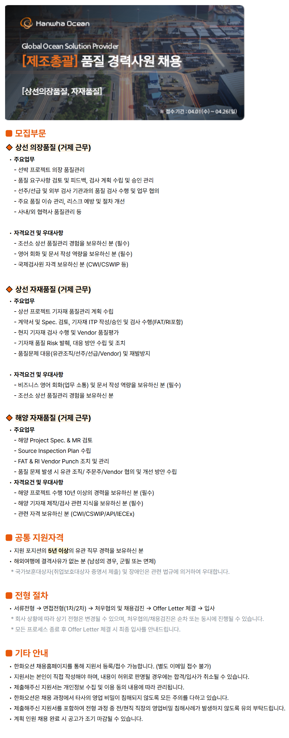 - ÇØ¾ç ÇÁ·ÎÁ§Æ® ¼öÇà 10³â ÀÌ»óÀÇ °æ·ÂÀ» º¸À¯ÇϽŠºÐ (Çʼö)