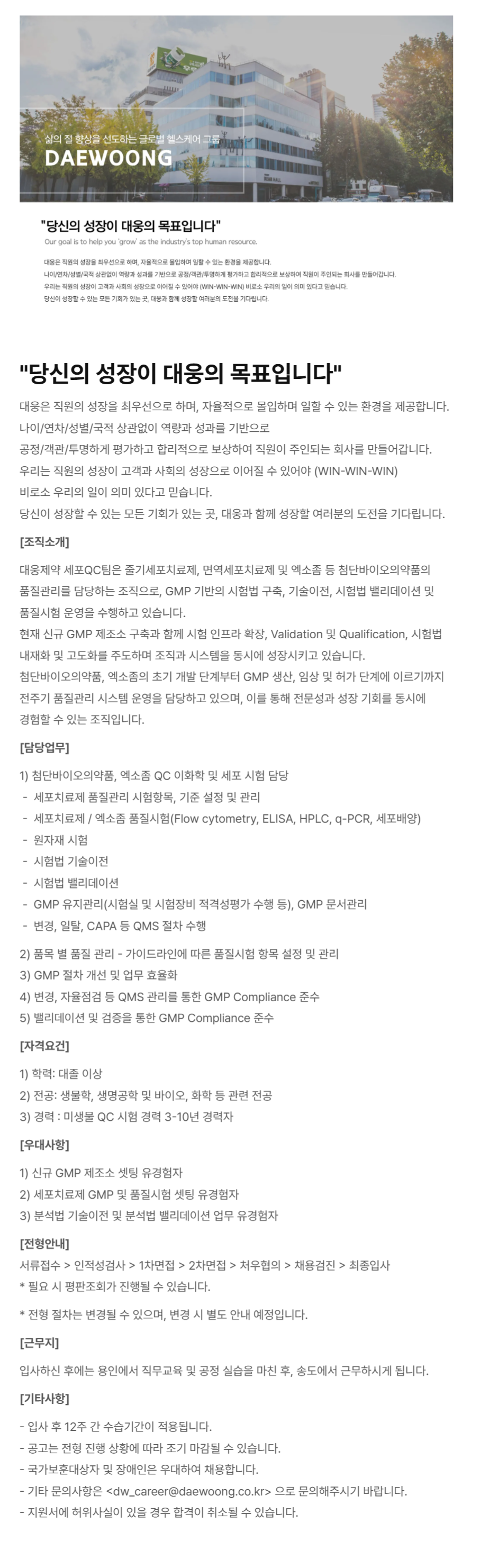 ´ë¿õÁ¦¾à ¼¼Æ÷QCÆÀÀº Áٱ⼼Æ÷Ä¡·áÁ¦, ¸é¿ª¼¼Æ÷Ä¡·áÁ¦ ¹× ¿¢¼ÒÁ» µî ÷´Ü¹ÙÀÌ¿ÀÀǾàǰÀÇ Ç°Áú°ü¸®¸¦ ´ã´çÇÏ´Â Á¶Á÷À¸·Î, GMP ±â¹ÝÀÇ ½ÃÇè¹ý ±¸Ãà, ±â¼úÀÌÀü, ½ÃÇè¹ý ¹ë¸®µ¥ÀÌ¼Ç ¹× ǰÁú½ÃÇè ¿î¿µÀ» ¼öÇàÇϰí ÀÖ½À´Ï´Ù.
