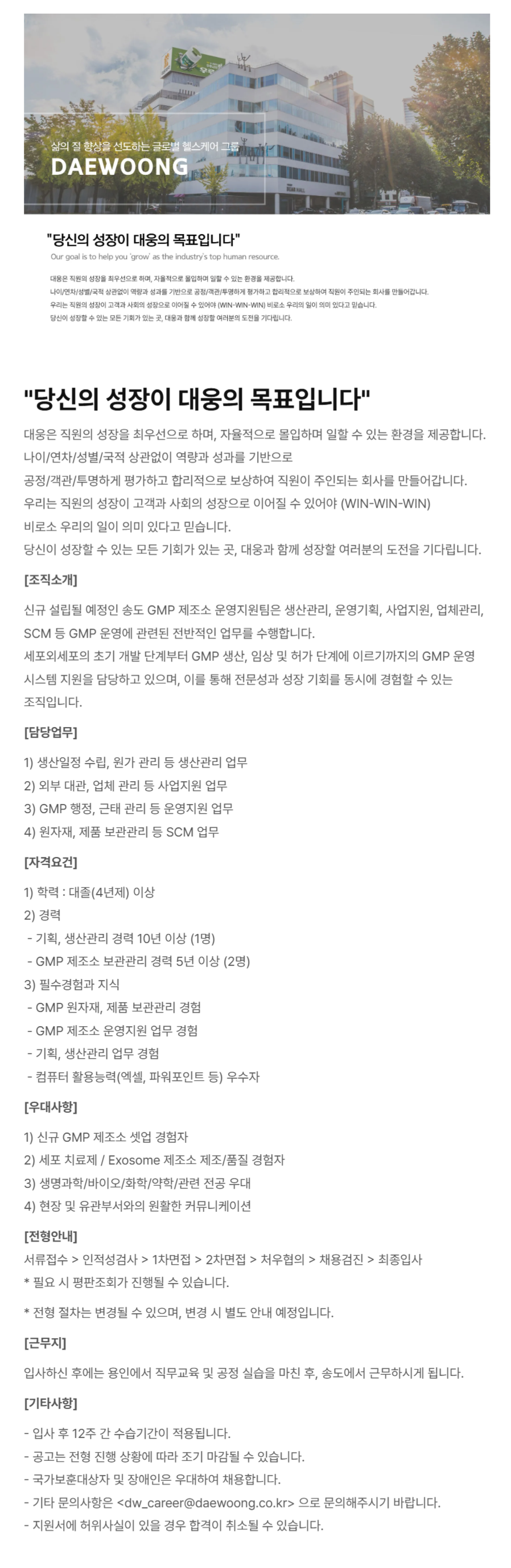 - GMP Á¦Á¶¼Ò º¸°ü°ü¸® °æ·Â 5³â ÀÌ»ó (2¸í)