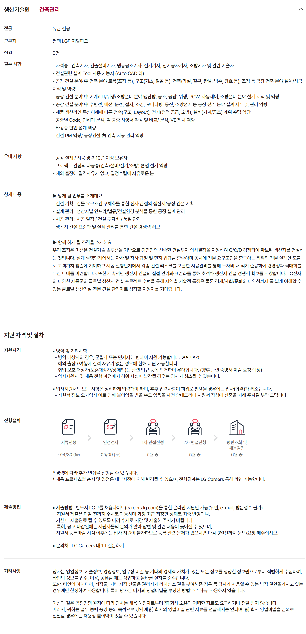 ¿ì¸® Á¶Á÷Àº ¹Ì¼ÇÀº °Ç¼³±â¼ú ¼Ö·ç¼ÇÀ» ±â¹ÝÀ¸·Î °æ¿µÁøÀÇ ½Å¼ÓÇÑ °Ç¼³ÅõÀÚ ÀÇ»ç°áÁ¤À» Áö¿øÇÏ¿© Q/C/D °æÀï·ÂÀÌ È®º¸µÈ »ý»êÁö¸¦ °Ç¼³ÇÏ´Â °ÍÀÔ´Ï´Ù. ¼³°è ½ÇÇà´Ü°è¿¡¼´Â ÀÚ»ç ¹× ÀÚ»ç ±ÔÁ¤ ¹× ÇöÁö ¹ý±Ô¸¦ ÁؼöÇÏ¸ç µ¿½Ã¿¡ °Ç¹° ¿ä±¸Á¶°ÇÀ» ÃæÁ·ÇÏ´Â ÃÖÀûÀÇ °Ç¹° ¼³°è¾È µµÃâ·Î °í°´°¡Ä¡ âÃâ¿¡ ±â¿©ÇÏ°í ½Ã°ø ½ÇÇà´Ü°è¿¡¼ °¢Á¾ °Ç¼³ ¸®½ºÅ©¸¦ Æ÷°ýÇÑ ½Ã°ø°ü¸®¸¦ ÅëÇØ ÅõÀÚºñ ³» Àû±â ÁذøÇÏ¿© °æ¿µ¼º°ú ±Ø´ëȸ¦ À§ÇÑ Åä´ë¸¦ ¸¶·ÃÇÕ´Ï´Ù. ¶ÇÇÑ Áö¼ÓÀûÀÎ »ý»êÁö °Ç¼³ÀÇ ½ÇÀý °ü¸®¿Í Ç¥ÁØÈ¸¦ ÅëÇØ ÃʰÝÂ÷ »ý»êÁö °Ç¼³ °æÀï·Â È®º¸¸¦ ÁöÇâÇÕ´Ï´Ù. LGÀüÀÚÀÇ ´Ù¾çÇÑ Á¦Ç°±ºÀÇ ±Û·Î¹ú »ý»êÁö °Ç¼³ ÇÁ·ÎÁ§Æ® ¼öÇàÀ» ÅëÇØ Áö¿ªº° ±â¼úÀû Ư¡Àº ¹°·Ð °æÁ¦/»çȸ/¹®ÈÀÇ ´Ù¾ç¼º±îÁö Æø ³Ð°Ô ÀÌÇØÇÒ ¼ö ÀÖ´Â ±Û·Î¹ú »ý»ê±â¼³ Àü¹® °Ç¼³ °ü¸®ÀÚ·Î ¼ºÀåÇÒ Áö¿øÀÚ¸¦ ±â´Ù¸³´Ï´Ù.