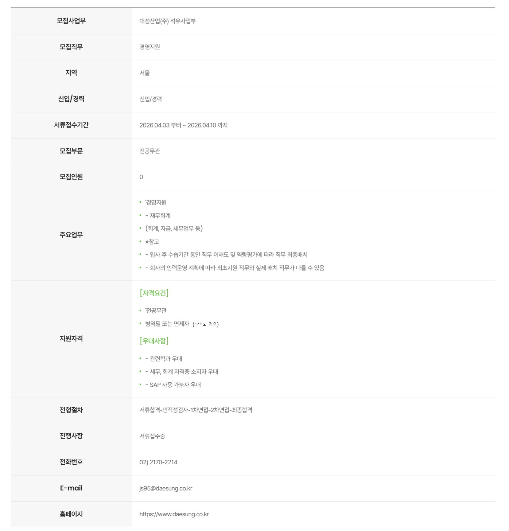 [´ë¼º»ê¾÷ ¼¿ï¼®À¯»ç¾÷ºÎ] °æ¿µÁö¿ø(À繫ȸ°è) ½ÅÀÔ»ç¿ø ¸ðÁý