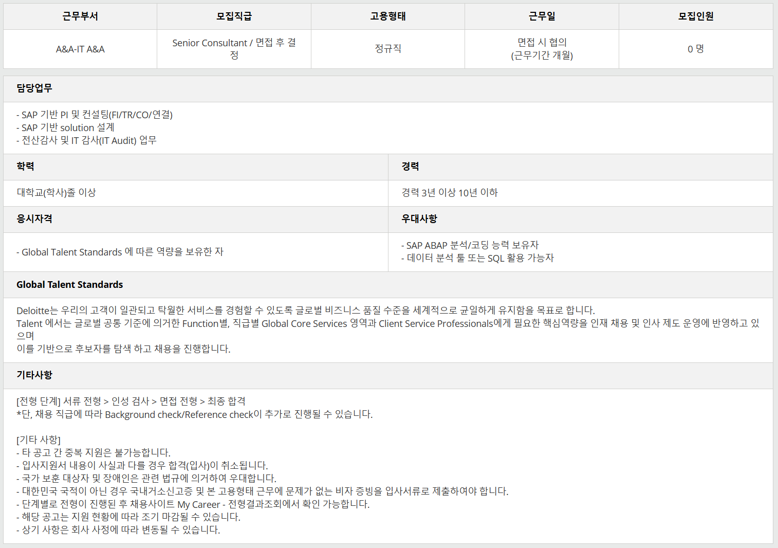 A&A-IT A&A Senior Consultant / ¸éÁ¢ ÈÄ °áÁ¤ Á¤±ÔÁ÷ ¸éÁ¢ ½Ã ÇùÀÇ