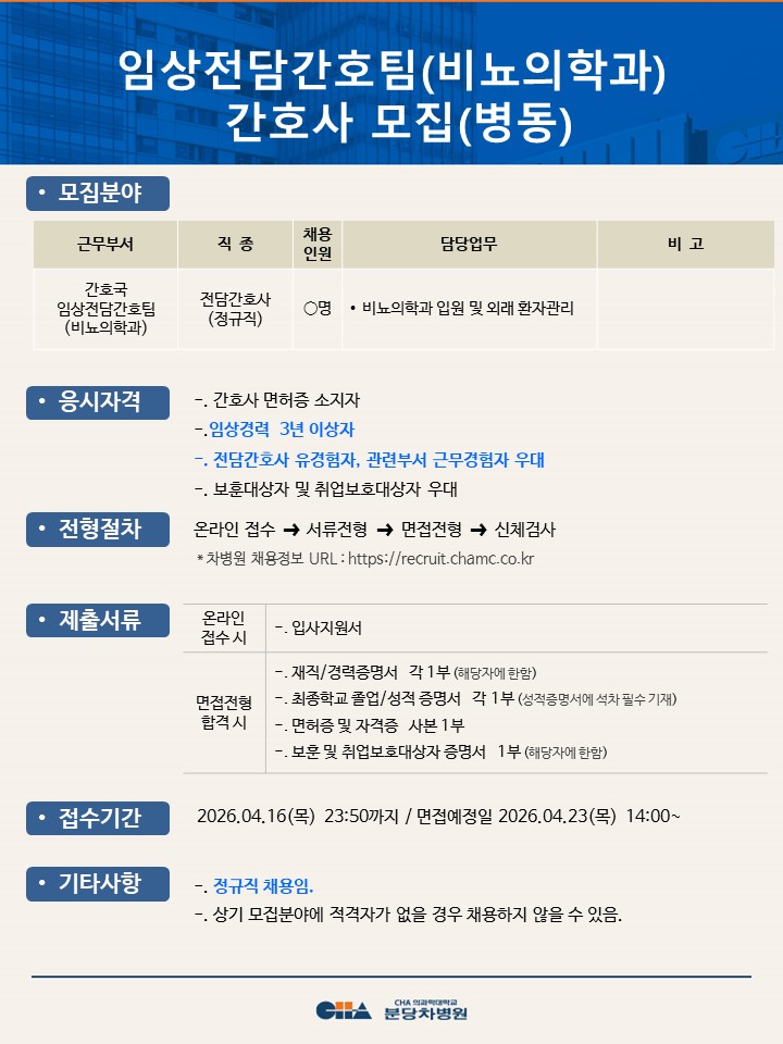 [ºÐ´çÂ÷º´¿ø] ÀÓ»óÀü´ã°£È£ÆÀ(ºñ´¢ÀÇÇаú) °£È£»ç ¸ðÁý(º´µ¿)