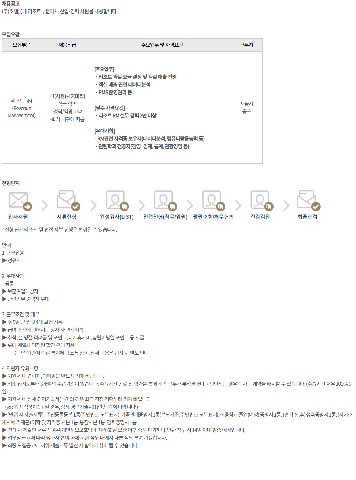 È£ÅÚ·Ôµ¥ ¸®Á¶Æ®ºÎ¹® RM(Revenue Management) ½ÅÀÔ/°æ·Â Á¤±ÔÁ÷ ä¿ë