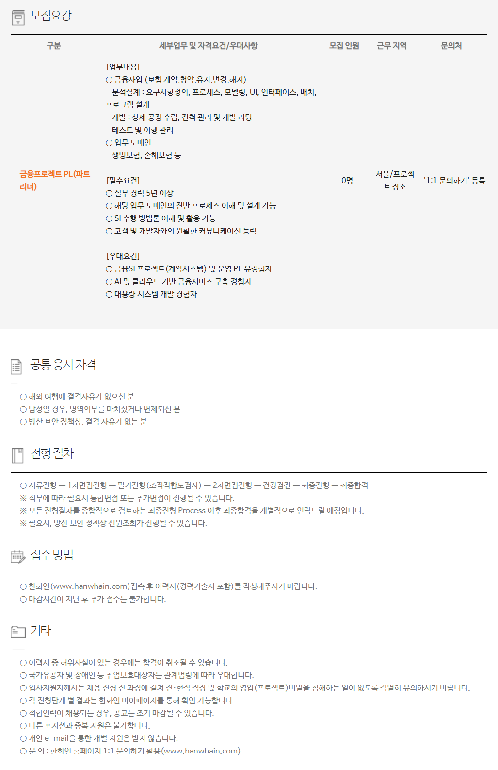 ¡Û ´ë¿ë·® ½Ã½ºÅÛ °³¹ß °æÇèÀÚ 0¸í ¼¿ï/ÇÁ·ÎÁ§Æ® Àå¼Ò '1:1 ¹®ÀÇÇϱâ' µî·Ï