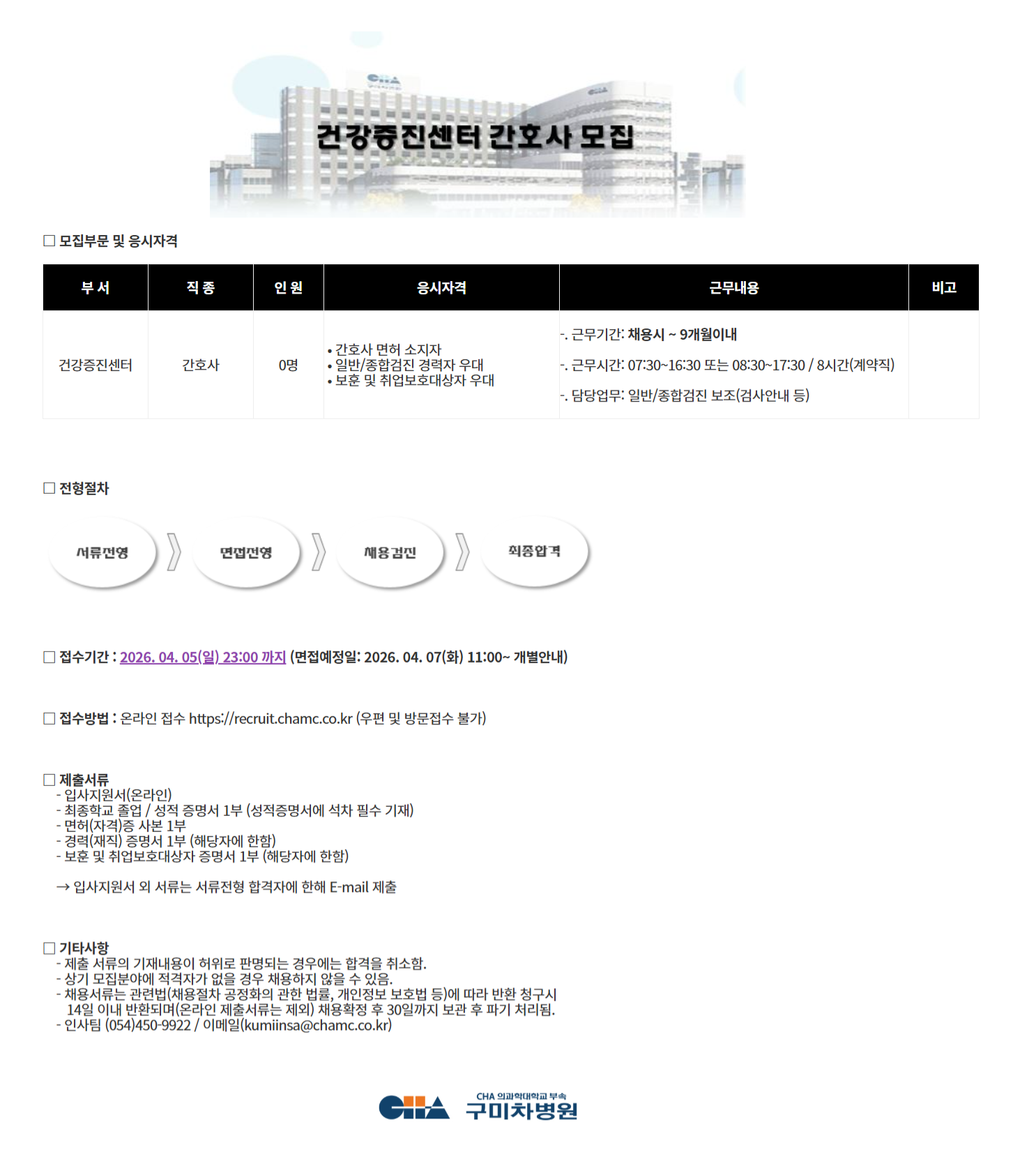 [±¸¹ÌÂ÷º´¿ø] °Ç°ÁõÁø¼¾ÅÍ °£È£»ç ¸ðÁý(±â°£Á¦)