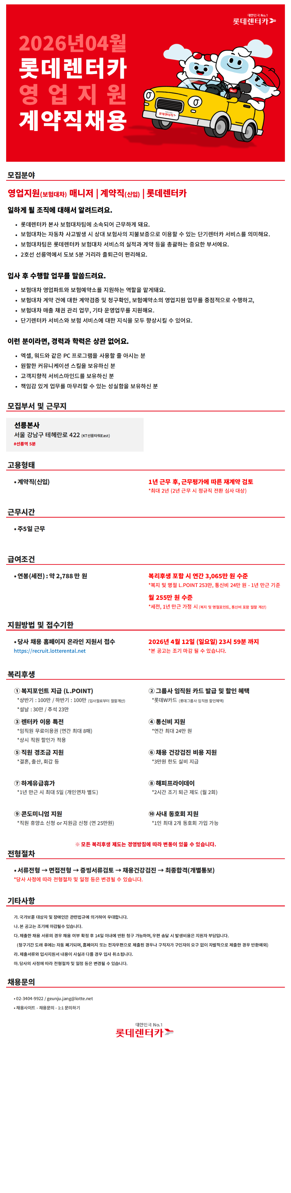 26³â 4¿ù °è¾àÁ÷(½ÅÀÔ) - ¿µ¾÷Áö¿ø(º¸Çè´ëÂ÷)
