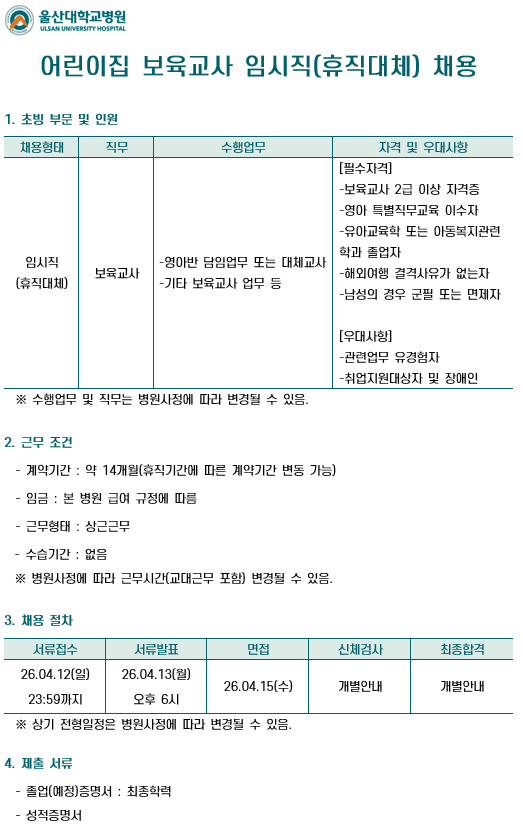 ¾î¸°ÀÌÁý º¸À°±³»ç ÀÓ½ÃÁ÷(ÈÞÁ÷´ëü) ä¿ë