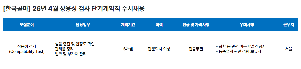 [Çѱ¹Äݸ¶] 26³â 4¿ù »ó¿ë¼º °Ë»ç ´Ü±â°è¾àÁ÷ ¼ö½Ãä¿ë