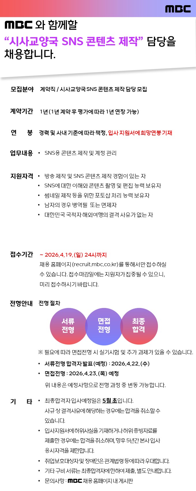 MBC ½Ã»ç±³¾ç±¹ SNS ÄÜÅÙÃ÷ Á¦ÀÛ ´ã´ç ¸ðÁý