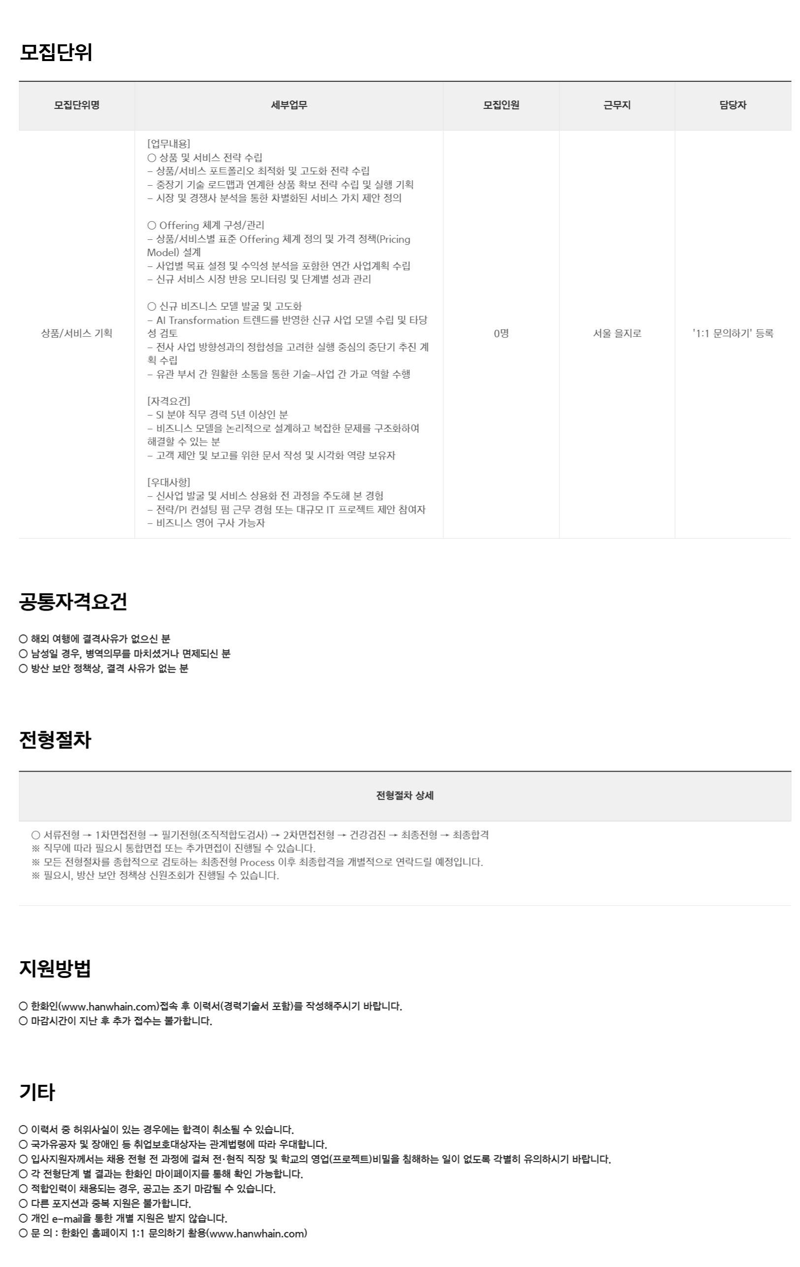 »óǰ/¼ºñ½º ±âȹ ´ã´çÀÚ °æ·Â»ç¿ø ä¿ë