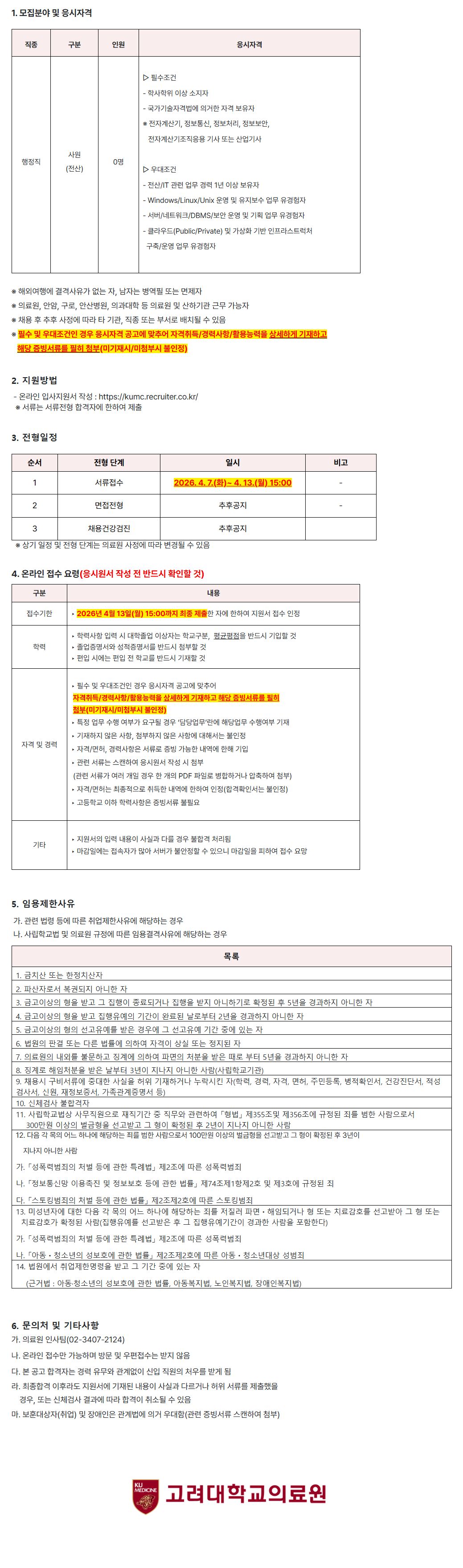 °í·Á´ëÇб³ÀÇ·á¿ø ½ÅÀÔ ±³Á÷¿ø(Á¤±ÔÁ÷) ¸ðÁý(Àü»ê)