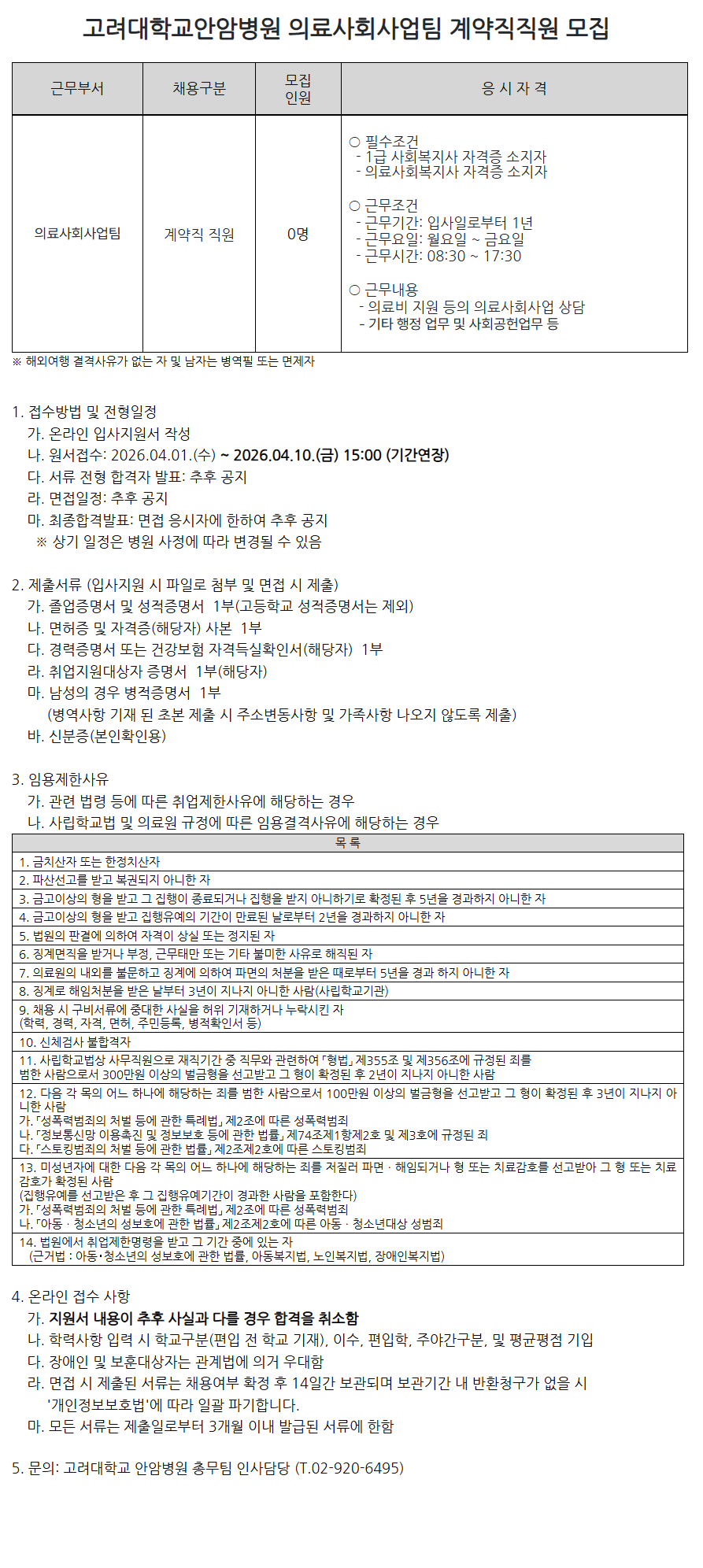 °í·Á´ëÇб³¾È¾Ïº´¿ø ÀÇ·á»çȸ»ç¾÷ÆÀ °è¾àÁ÷Á÷¿ø ¸ðÁý