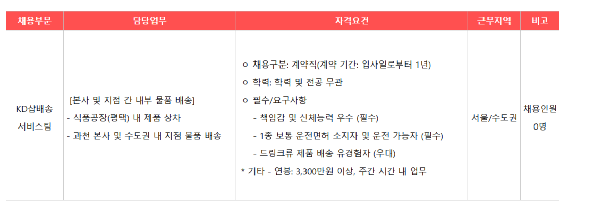 [±¤µ¿Á¦¾à] KD¼¥¹è¼Û¼ºñ½ºÆÀ ¹è¼Û±â»ç ¸ðÁý(º»»ç-ÁöÁ¡ °£ ³»ºÎ¹°Ç° ¹è¼Û)