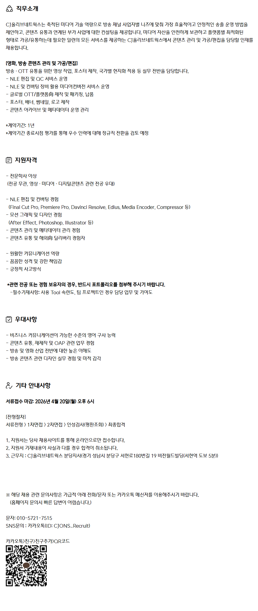 CJ¿Ã¸®ºê³×Æ®¿÷½º´Â ÃàÀûµÈ ¹Ìµð¾î ±â¼ú ¿ª·®À¸·Î ¹æ¼Û ä³Î »ç¾÷ÀÚº° ´ÏÁî¿¡ ¸ÂÃç °¡Àå È¿À²ÀûÀÌ°í ¾ÈÁ¤ÀûÀÎ ¼ÛÃ⠿ ¹æ¹ýÀ» Á¦¾ÈÇϰí, ÄÜÅÙÃ÷ À¯Åë°ú ¿¬°èµÈ ºÎ°¡ »ç¾÷¿¡ ´ëÇÑ ÄÁ¼³ÆÃÀ» Á¦°øÇÕ´Ï´Ù. ¹Ìµð¾î ÀÚ»êÀ» ¾ÈÀüÇÏ°Ô º¸°üÇϰí Ç÷§Æûº° ÃÖÀûÈµÈ ÇüÅ·Π°¡°ø/À¯ÅëÇϴµ¥ ÇÊ¿äÇÑ ÀÏ·ÃÀÇ ¸ðµç ¼ºñ½º¸¦ Á¦°øÇÏ´Â CJ¿Ã¸®ºê³×Æ®¿÷½º¿¡¼ ÄÜÅÙÃ÷ °ü¸® ¹× °¡°ø/ÆíÁýÀ» ´ã´çÇÒ ÀÎÀ縦 ä¿ëÇÕ´Ï´Ù.
