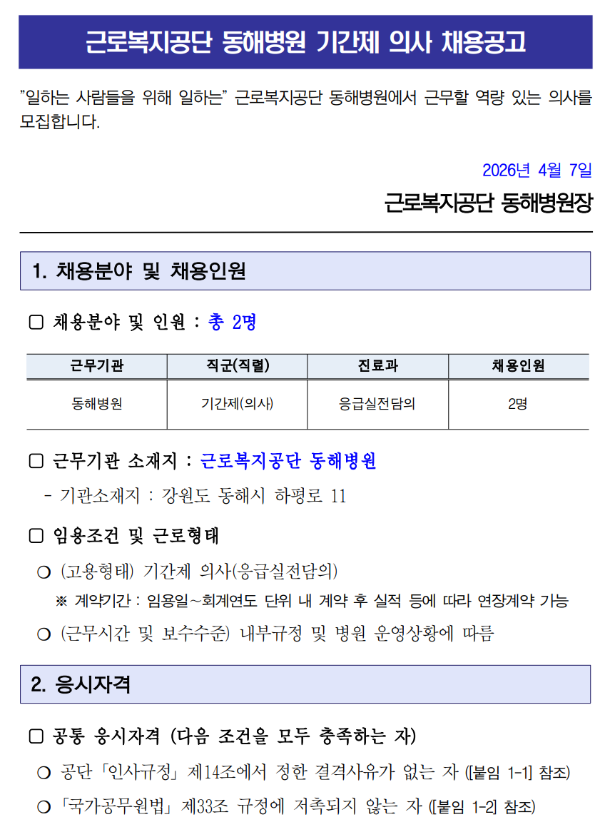 [µ¿Çغ´¿ø] ±â°£Á¦ ÀÇ»ç(ÀÀ±Þ½ÇÀü´ãÀÇ) ½Å±Ô ä¿ë