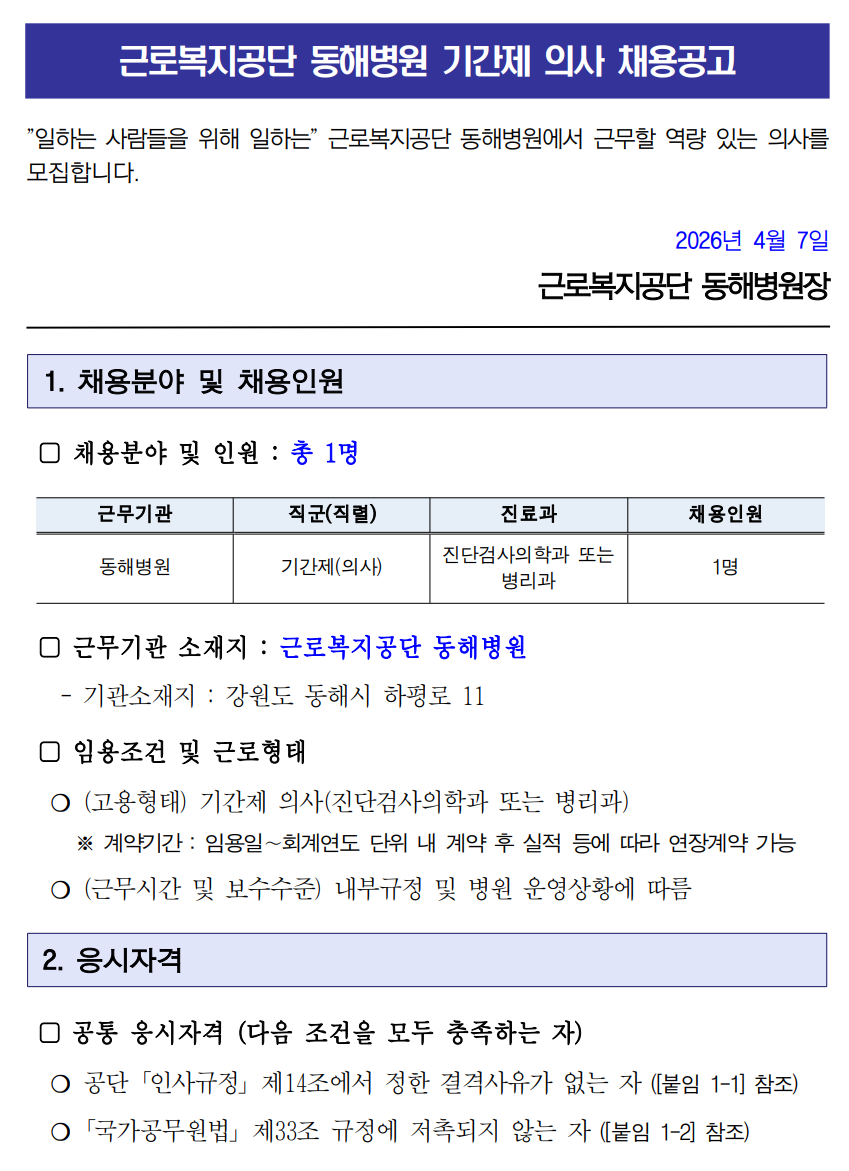 [µ¿Çغ´¿ø] ±â°£Á¦ ÀÇ»ç(Áø´Ü°Ë»çÀÇÇаú(º´¸®°ú)) ½Å±Ô ä¿ë