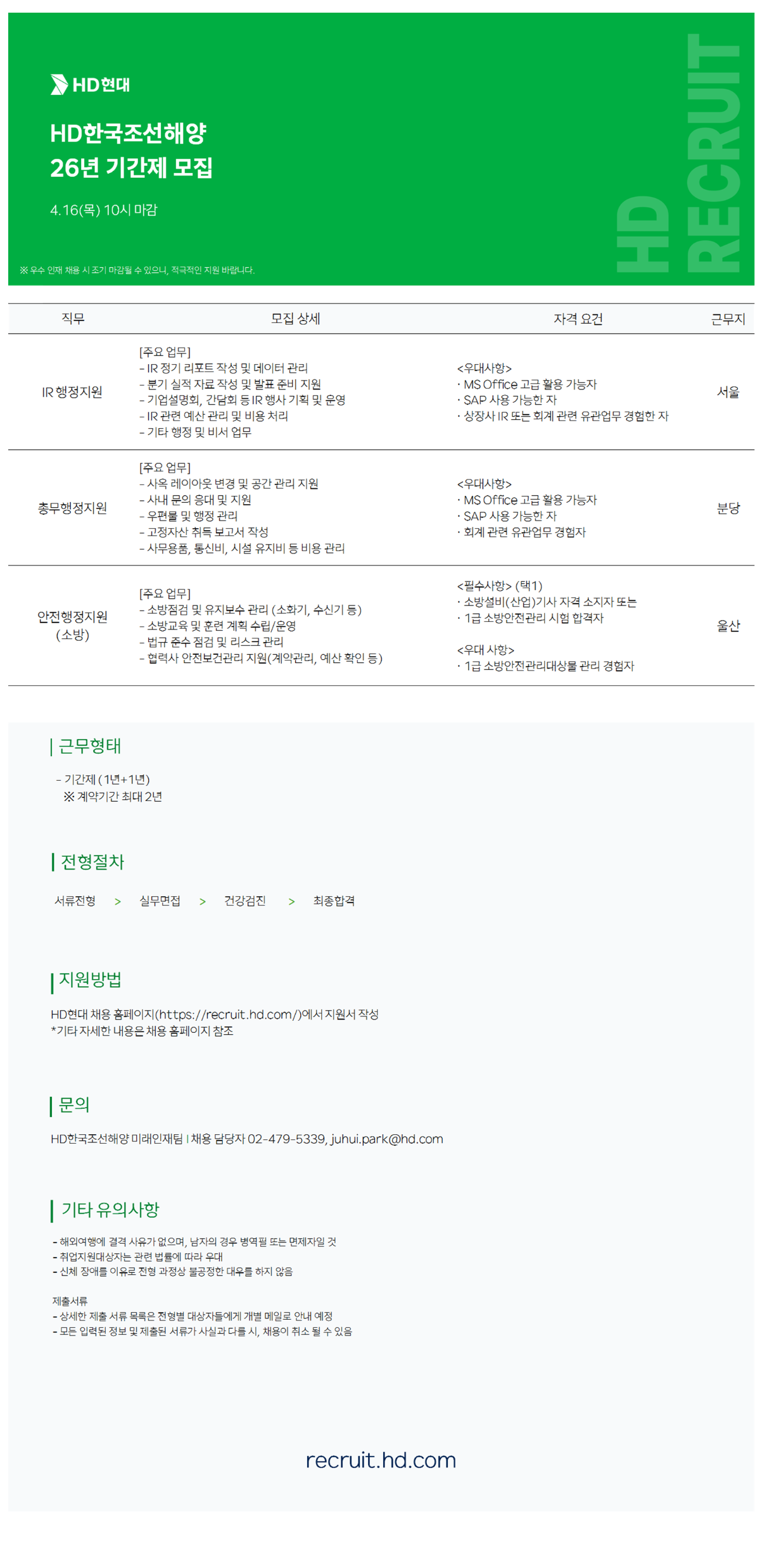 [HDÇѱ¹Á¶¼±Çؾç] ±â°£Á¦ ¸ðÁý (IR/Ãѹ«/¾ÈÀü)