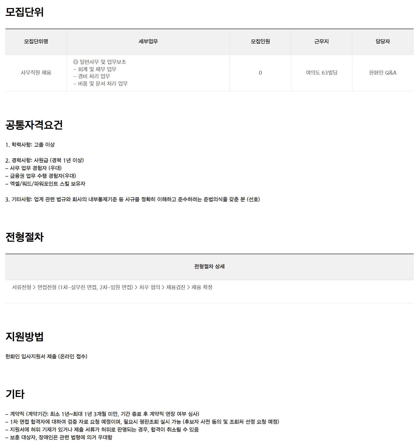 - °è¾àÁ÷ (°è¾à±â°£: ÃÖ¼Ò 1³â~ÃÖ´ë 1³â 3°³¿ù ¹Ì¸¸, ±â°£ Á¾·á ÈÄ °è¾àÁ÷ ¿¬Àå ¿©ºÎ ½É»ç)
